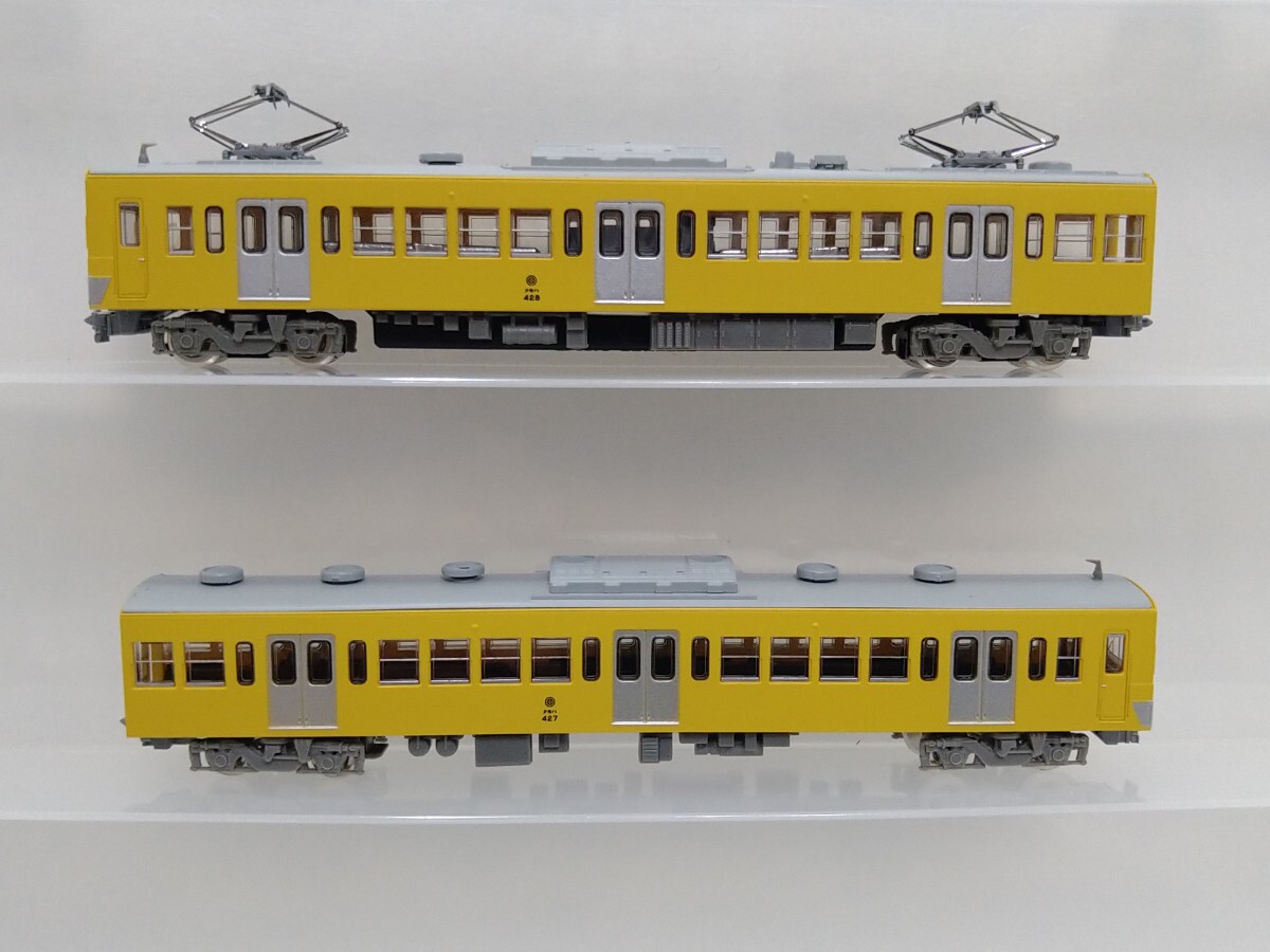購入後、N動力化して元箱に入れそのまま暗所保管していました。動力ユニット組込時の試運転のみでレイアウト等での走行履歴はありません。クモハ428・427共にアンテナ取付済みです。出品前に動作確認しました。車両外観は写真で確認してください。残パーツを同梱します。