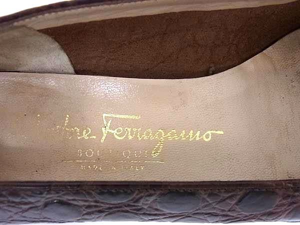 Salvatore Ferragamo フェラガモ ヴァラリボン クロコダイル型押しレザー ヒール パンプス サイズ 6 1/2(約23.5cm) ブラウン系 DH0122