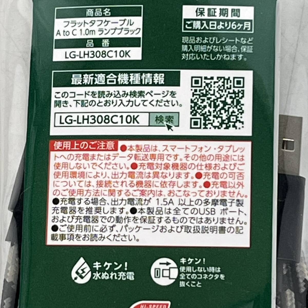 LOGOS ロコス 充電ケーブル フラットタフケーブル A to C 1.0m ランプブラック LG-LH308C10K 新品未開封品 T7J0901