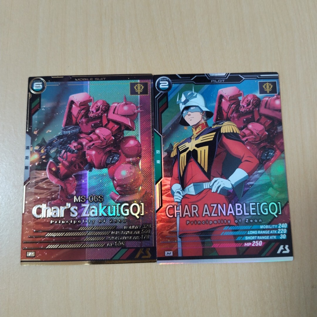 ガンダムアーセナルベース、Pレア、シャア専用ザク[GQ]& Mレア シャア・アズナブル[GQ]の出品となります。未使用品です。排出後、スリーブに入れて保管していますが初期キズなど気になさる方はご遠慮ください。配送料金は梱包代込みで全国一律、120円とさせていただきます。他の出品との同梱は対応いたします。ノークレム、ノーリターンにてお願いいたします。