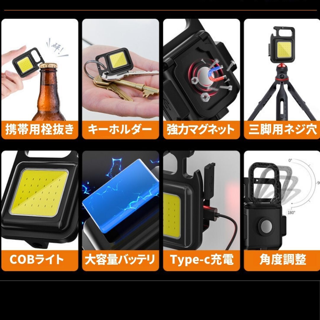 LED COB ライト ミニ投光器 2個 作業灯 小型 軽量 懐中電灯 ワークライト 照明 高輝度 マグネット USB充電ケーブル付 防水 キーホルダー カ