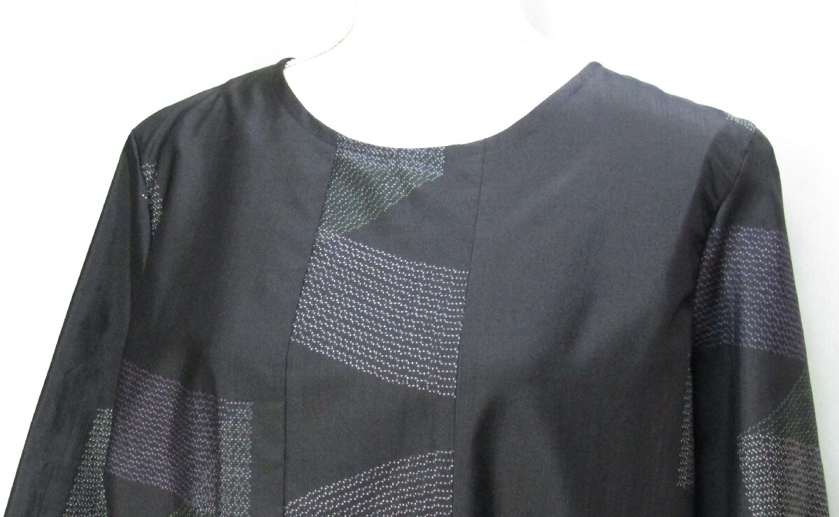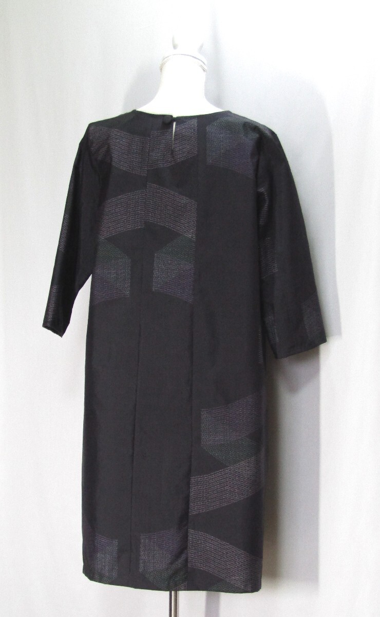 (1039)着物リメイク ハンドメイド「ワンピース」大島 黒系