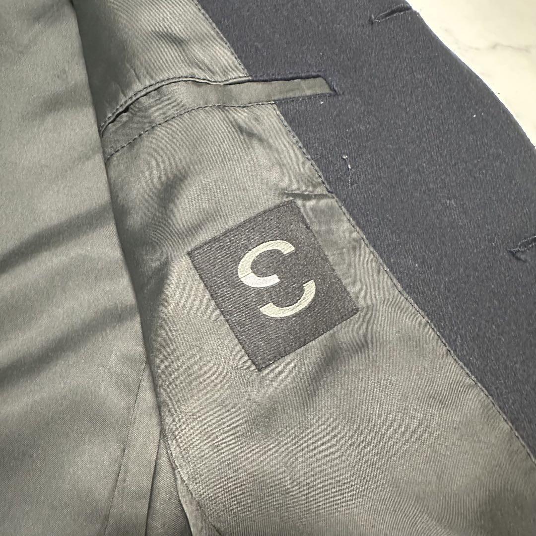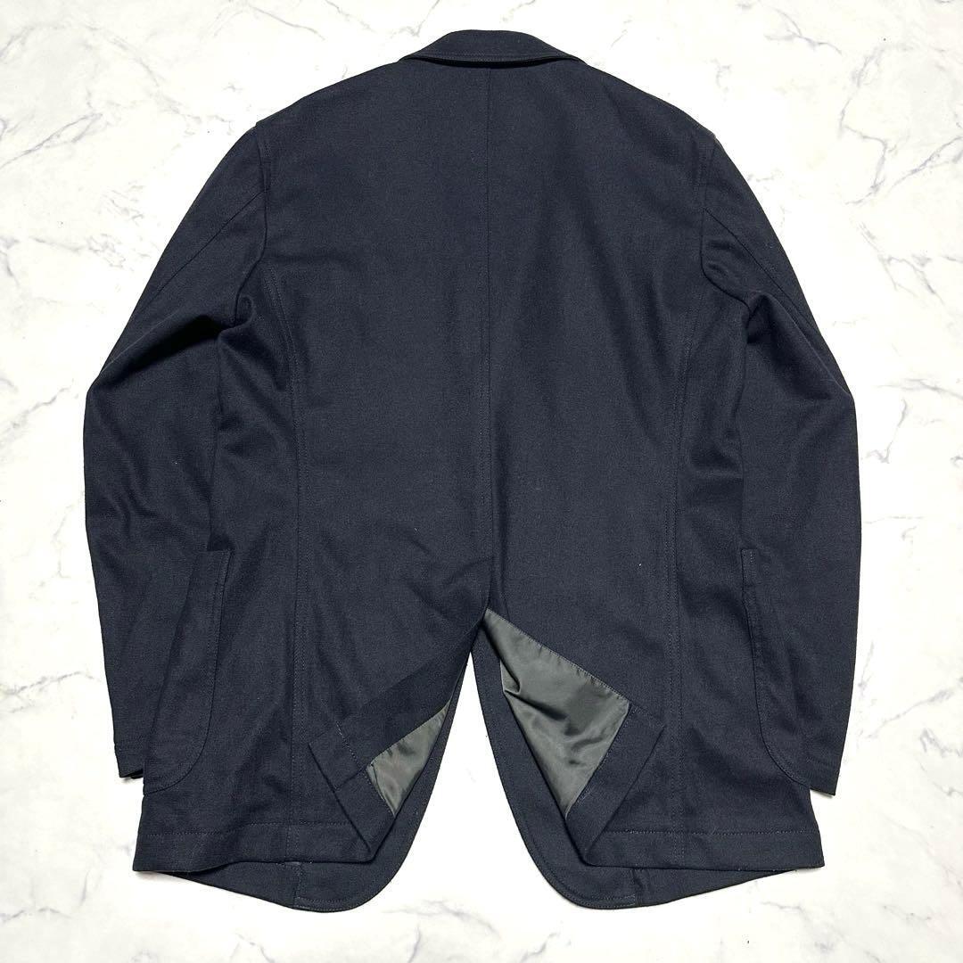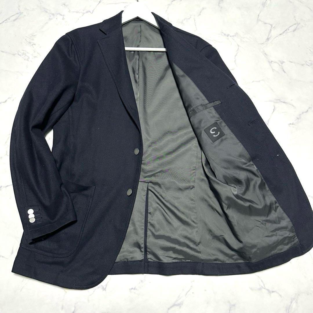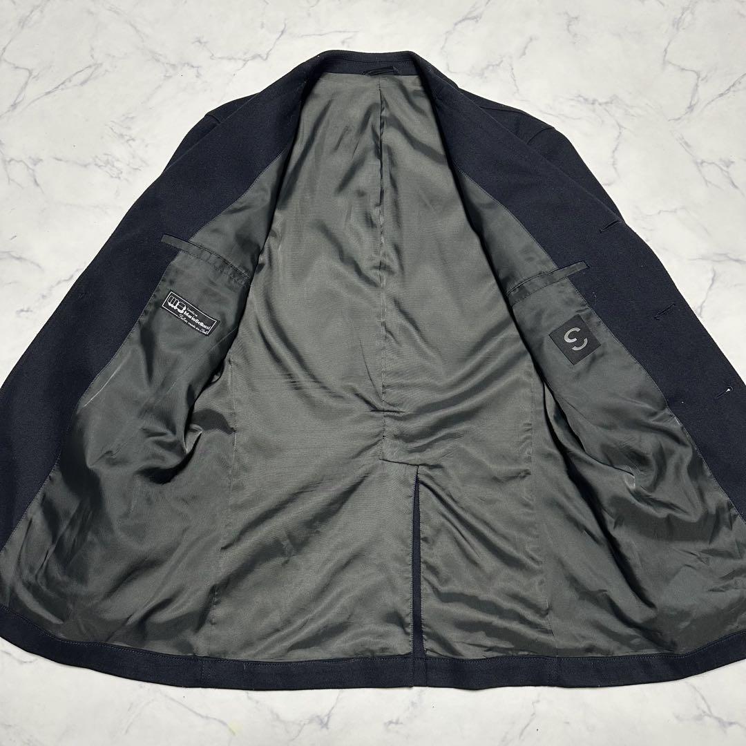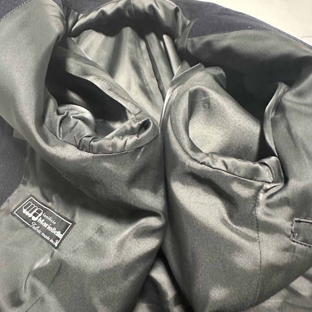 美品 イタリア製生地 ネイビージャケット 紺ブレ 銀ボタン LL ストレッチ ジャケパン 本切羽 総裏