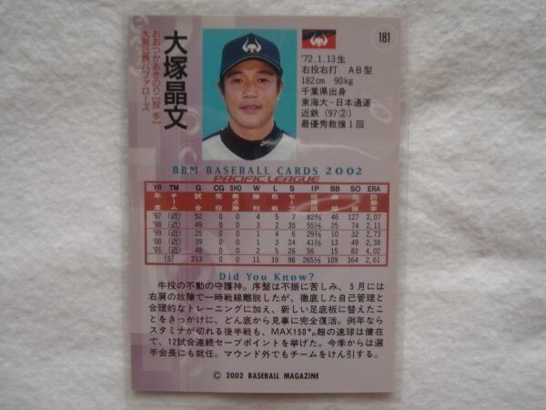 【BBM プロ野球カード 2002】No.181 大塚晶文 大阪近鉄バファローズ サインパラレル【トレーディングカード トレカ ベースボールマガジン社