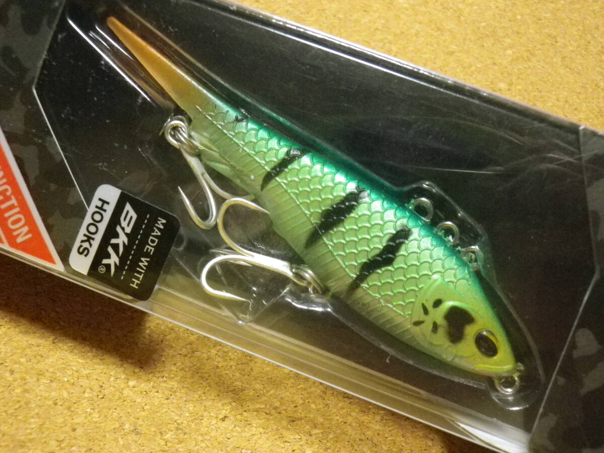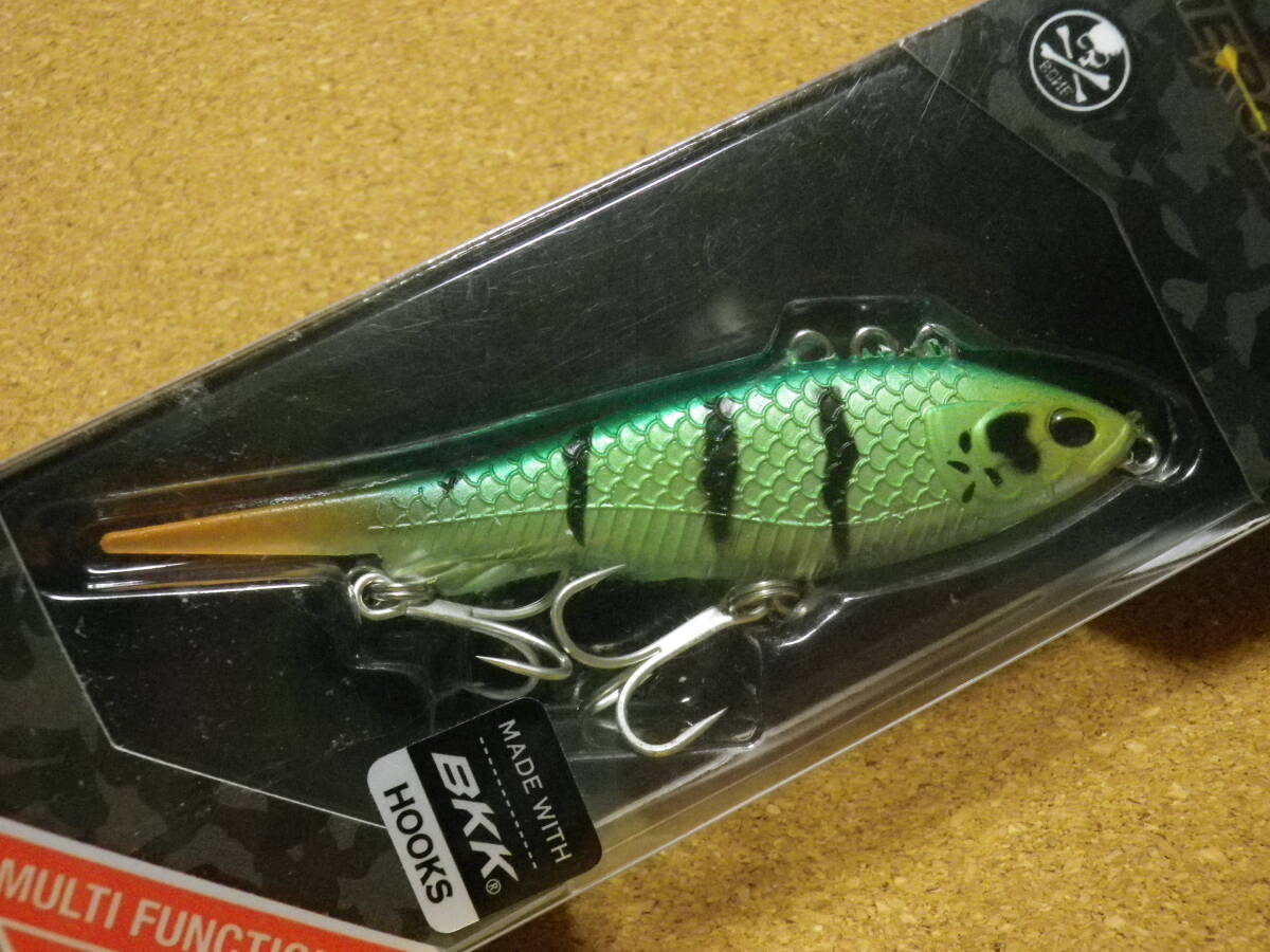 ボーンフィッシングワールドのHERO DARTER 90 です。Length: 90mm、Weight: 16g、Depth: Variable、Type: Sinking/Multi-Function Vibe、Hook Size: #6●HERO DARTERは、多魚種で深場を攻略するために考案された、3つのラインアイを設置されたマルチファンクション ソフトバイブレーション。上部、一番前のアイは通常バイブモードで、ジャークすれば魅惑的なダートアクションを生む。不規則にダートするアクションはリアルベイトフィッシュの動きを再現する。スローアクションが求められるときには、程よいスピードのタダ巻きでウォブルし、ラインを張った状態でシンキングさせればヒラヒラとフォールする。上部2番目、3番目のアイのバイブレーションモードでは、シンキングスピードが速くなり、ストレートリトリーブではよりワイドなウォブリングアクションになる。フロントアイにシンカーを取り付ければ、さらに深場を攻略することも可能。●