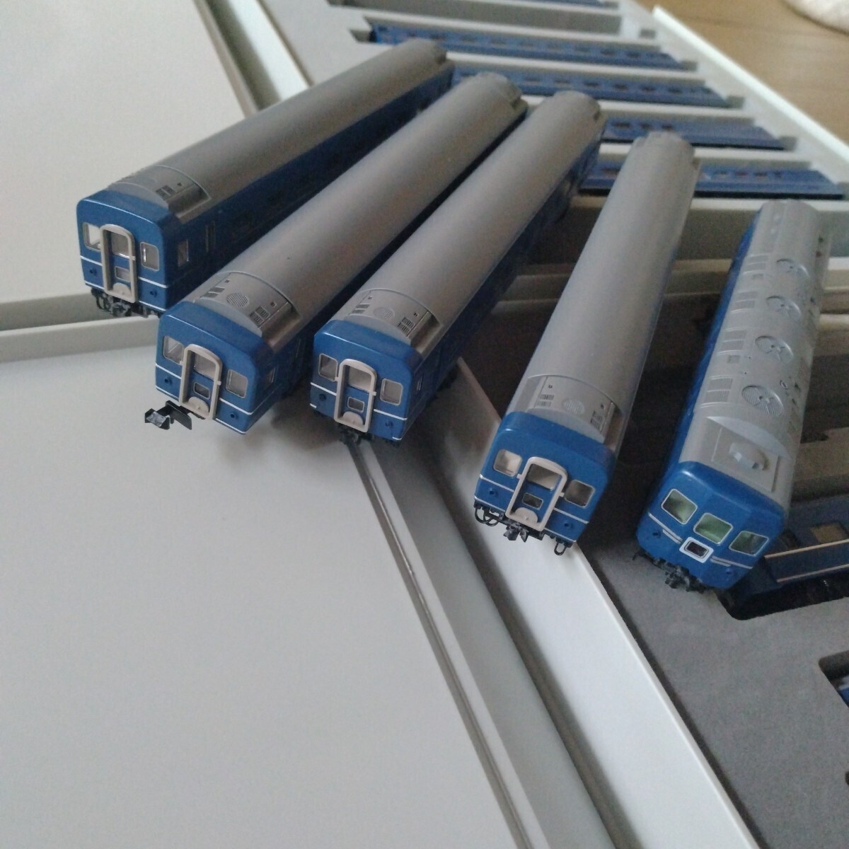 品番92818(ハシゴ無しだが青色寝台パーツでTN対応床下の旧製品)の中古品をベースに、その他車両はパーツ単位でバラバラに収集し、一部パーツ組み替え等したものです。ボディ・車輪の状態は比較的綺麗なものを選抜していますが、