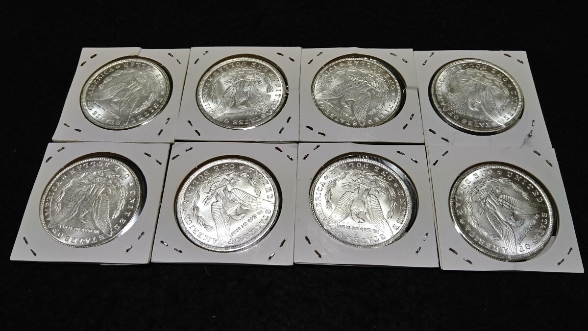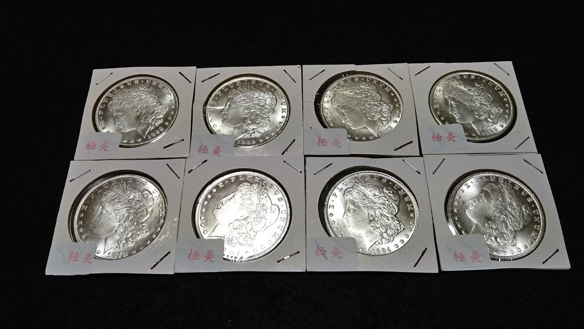 《委託販売 Y 150》アメリカ古銭 モルガン 1ドル 包装済み銀色コイン 8枚 詳細不明 未鑑定品。知人より好きな方に譲りたいとのこと。コレクション、資料用にいかがでしょうか?知人によりますと鑑定品ではなく磁石にはつきませんが、金貨、銀貨、銅貨等の証明書等もありませんのでレプリカ品などの可能性もありますのでお金に執着心か強い方、転売、資産運用等で入札される方は後悔しますと大変ですのでおすすめできません。品物の到着後の返金は依頼者、知人、様々の方に迷惑がかかりますし、落札、到着後に品物のすり替えの可能性もありますのでで基本的にきません。なお、当方こちらの知識は皆無であり本物なのか?偽物なのか?写真がすべてです。写真ですので多少の色味、質感などは少々違うかも知れませんが、落札、受け取り後の品物の評価に対しては当方、委託販売しているだけですので詳しいことのお答えはできませんので落札前によく調査、確認してノークレーム、ノーリターンでご了承にて落札してください。 しかしながら、入札前、中の質問に関しては依頼者に聞いてみますので早めによろしくお願いいたします。尚、匿名配達である為、無事届いているのか心配ですので到着しましたら速やかに受け取り連絡をお願いいたします。5日間連絡、入金がない場合は落札者様をブラックリストにさせていただき、勝手ながら落札者都合でキャンセル扱いにさせていただきますので早めの連絡お願いいたします。