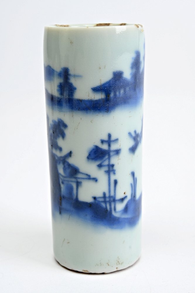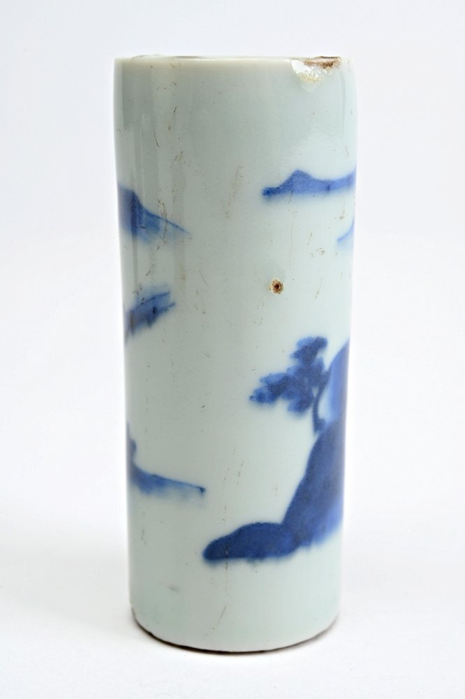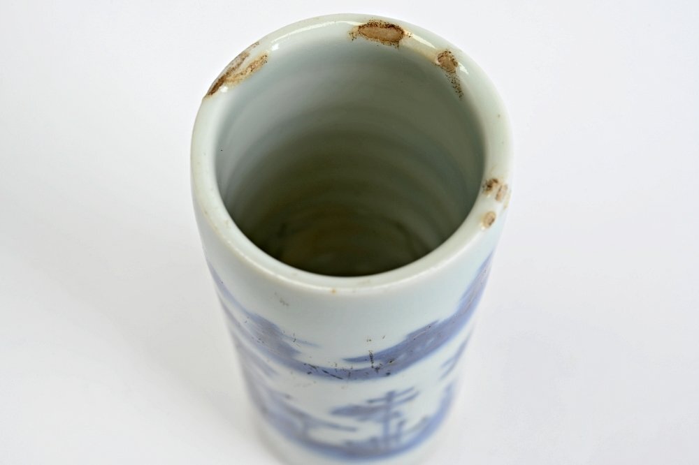 II2302◆唐物 染付茶巾筒 仕覆、箱付 茶道具 中国古玩◆h