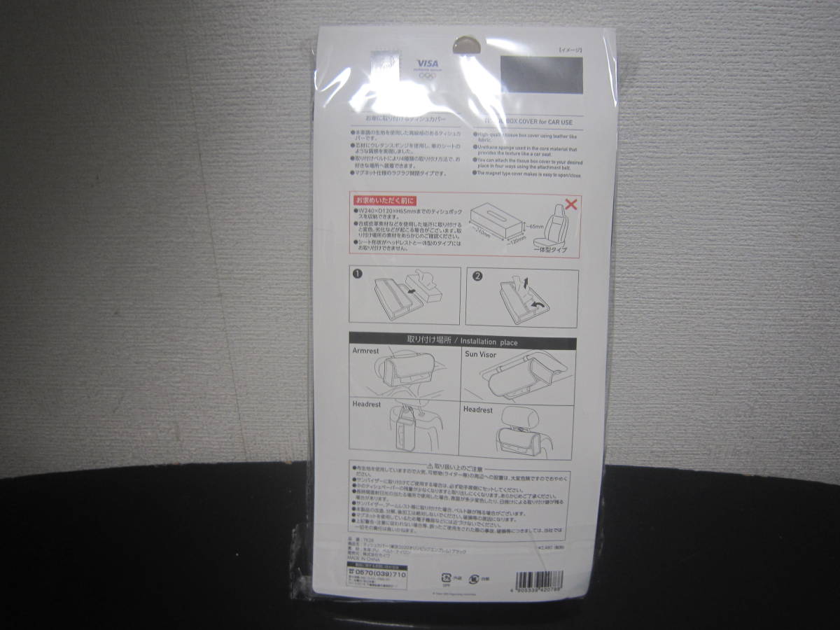 即決 送料無料 新品未開封 送料無料 TK28 東京20202公式ライセンス商品 セイワ製 ティッシュカバー 車用黒 本革調  ロゴ付き