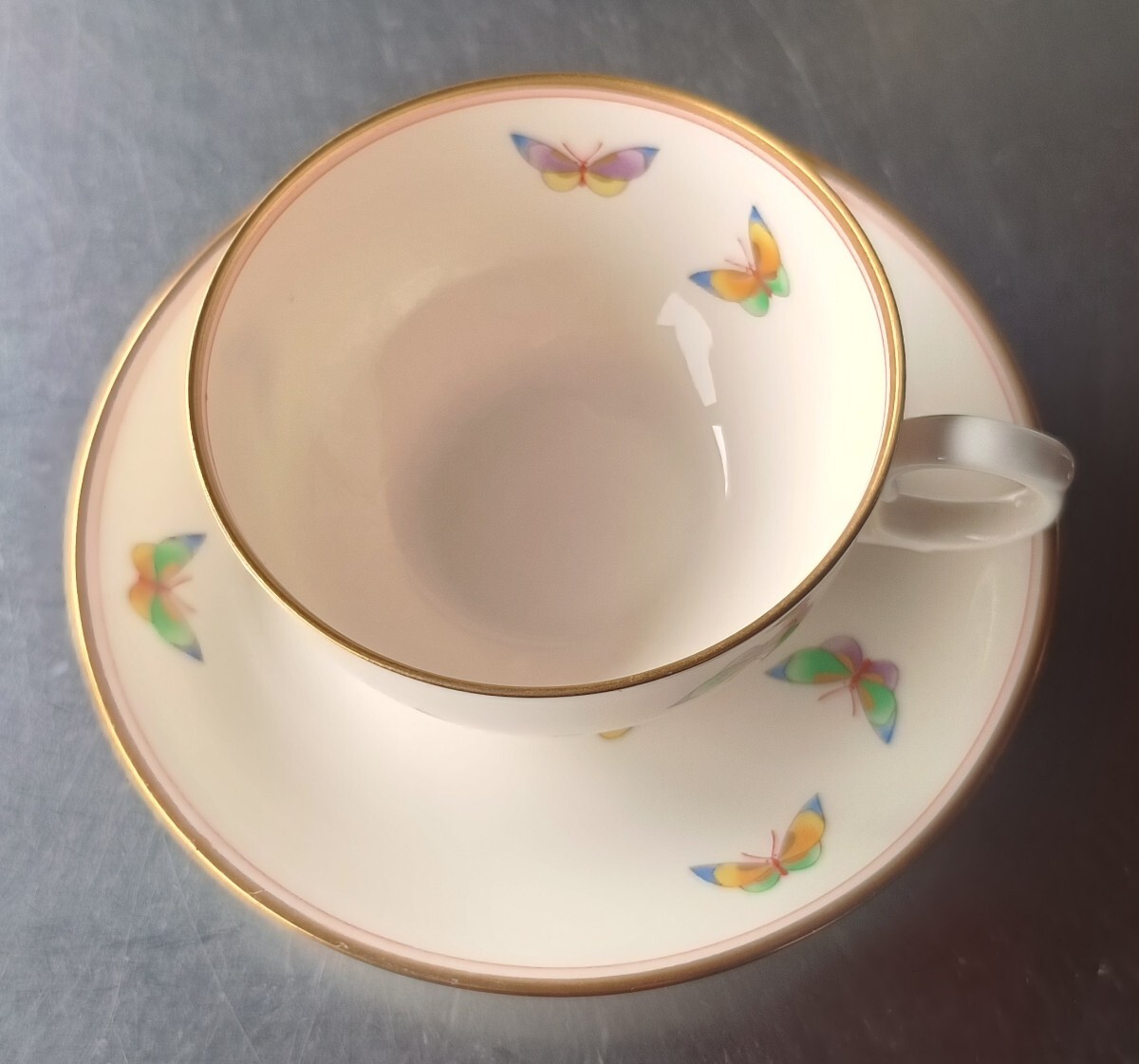 香蘭社 仲よしシリーズのカップ&ソーサー。蝶々デザインです。配送は宅急便easy60サイズ。