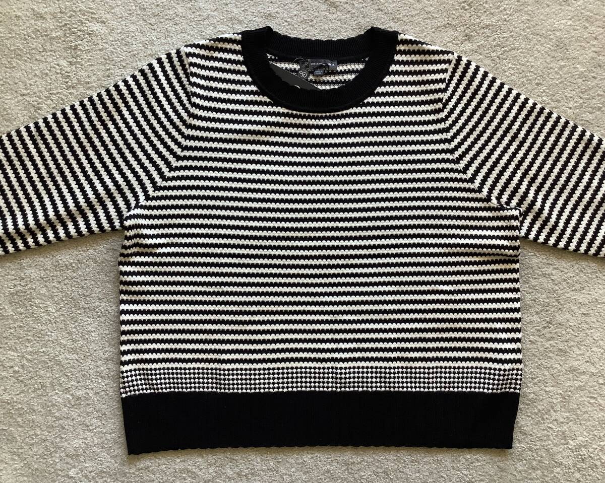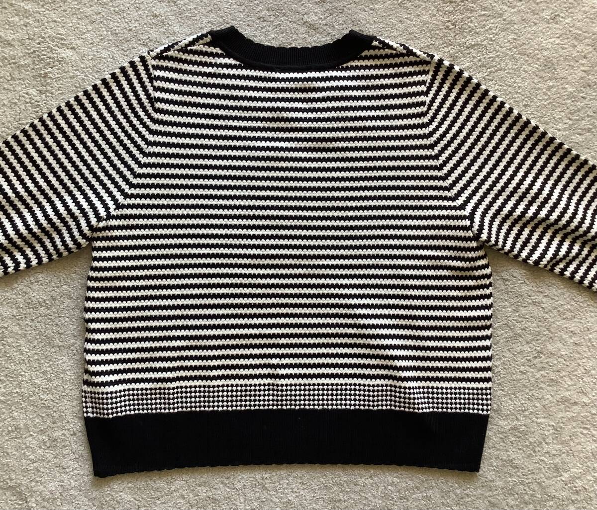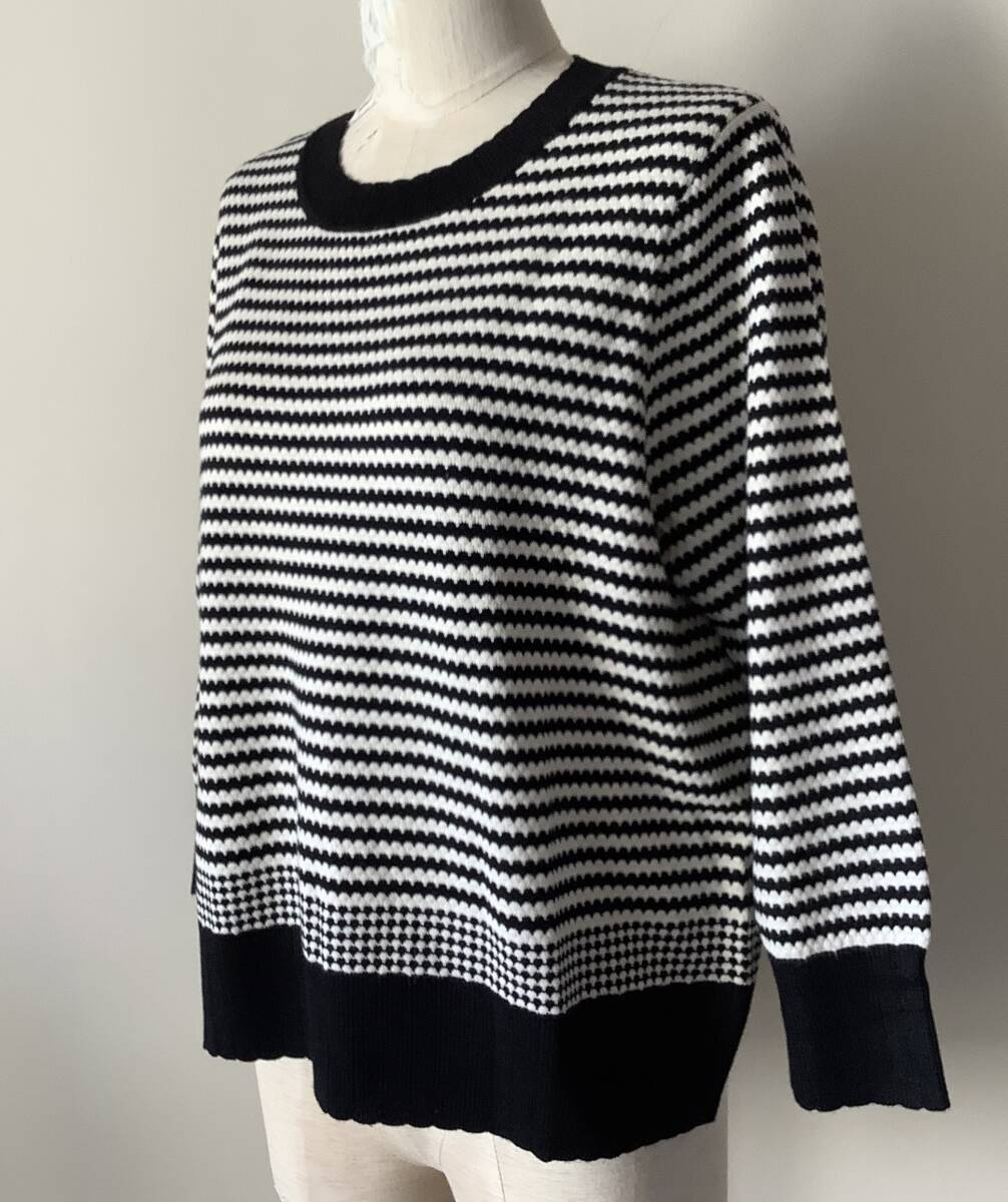 ADRIANNA PAPELLアドリアナパペル新品XL♪黒/クリーム色クルーネック波々スカラップストライプニットセーター