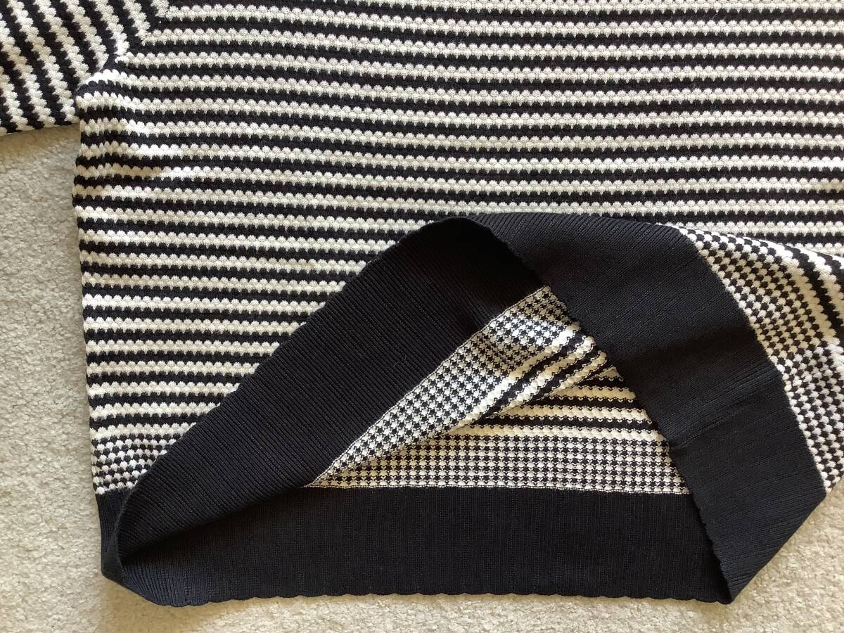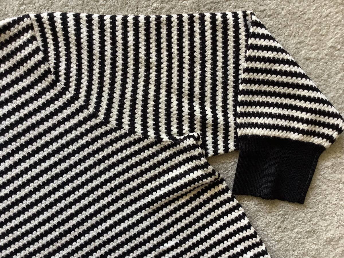 波々の縞々模様。裾に近い部分は細かいドット風の編み模様。