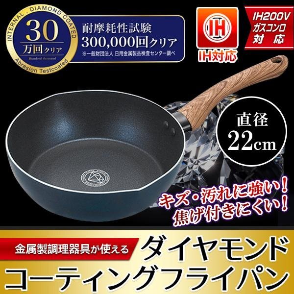 フライパン 22cm 深型 焦げ付きにくい IH対応 ガス火 ダイヤモンドコート 鍋 調理器具 キッチン 送料無料- 80S◇ 深型CONFT