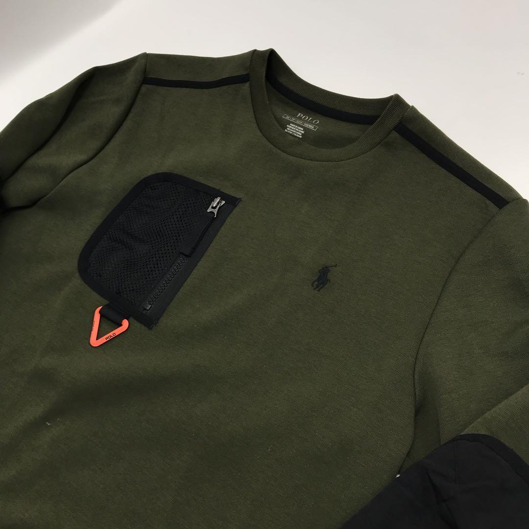 POLO RALPH LAUREN ポロラルフローレン ハイブリッド スウェットシャツ XS メンズ ワンポイント 刺繍 カーキ プルオーバー トレーナー 切替 トップス ラルフ ポロラルフ
