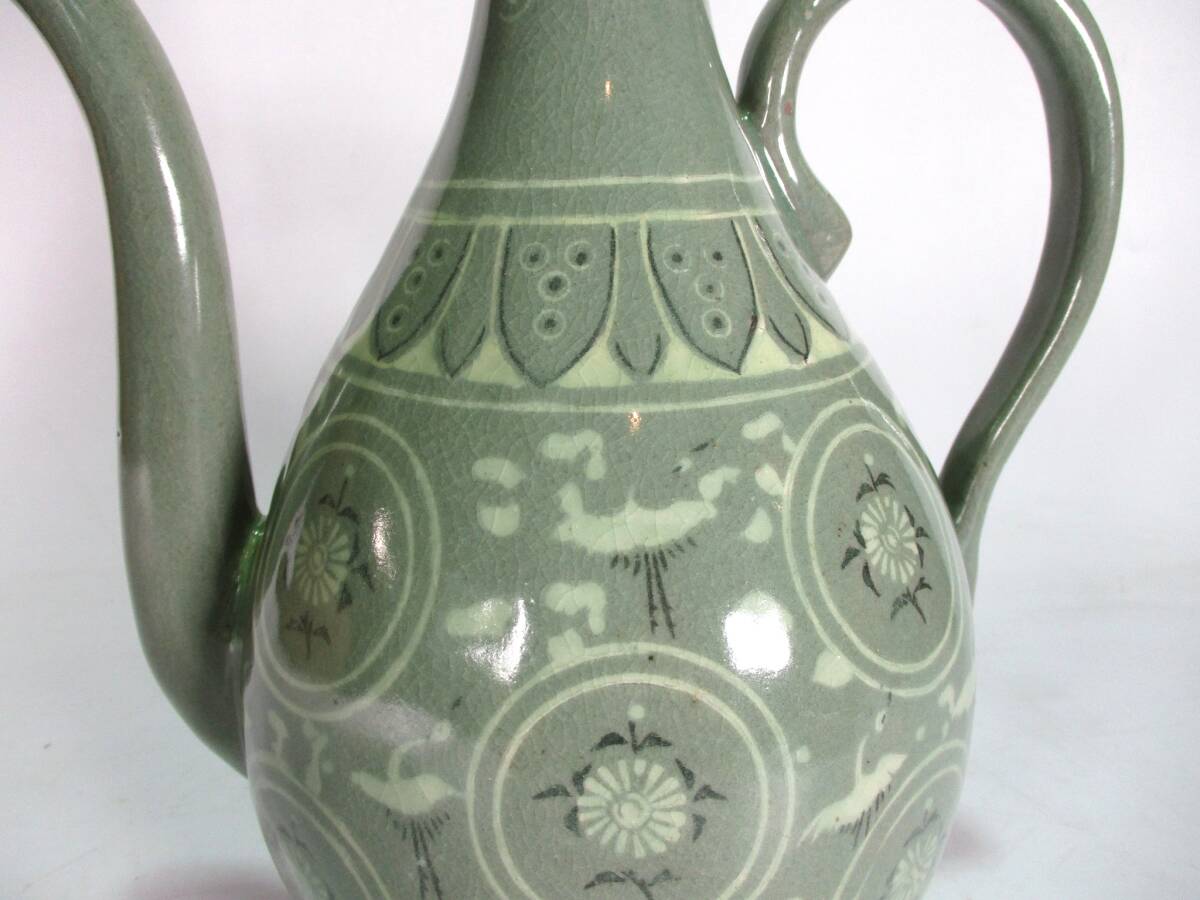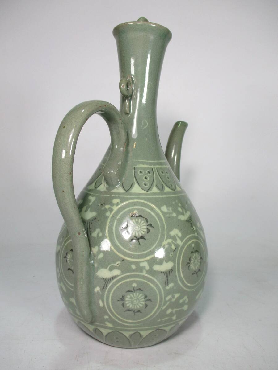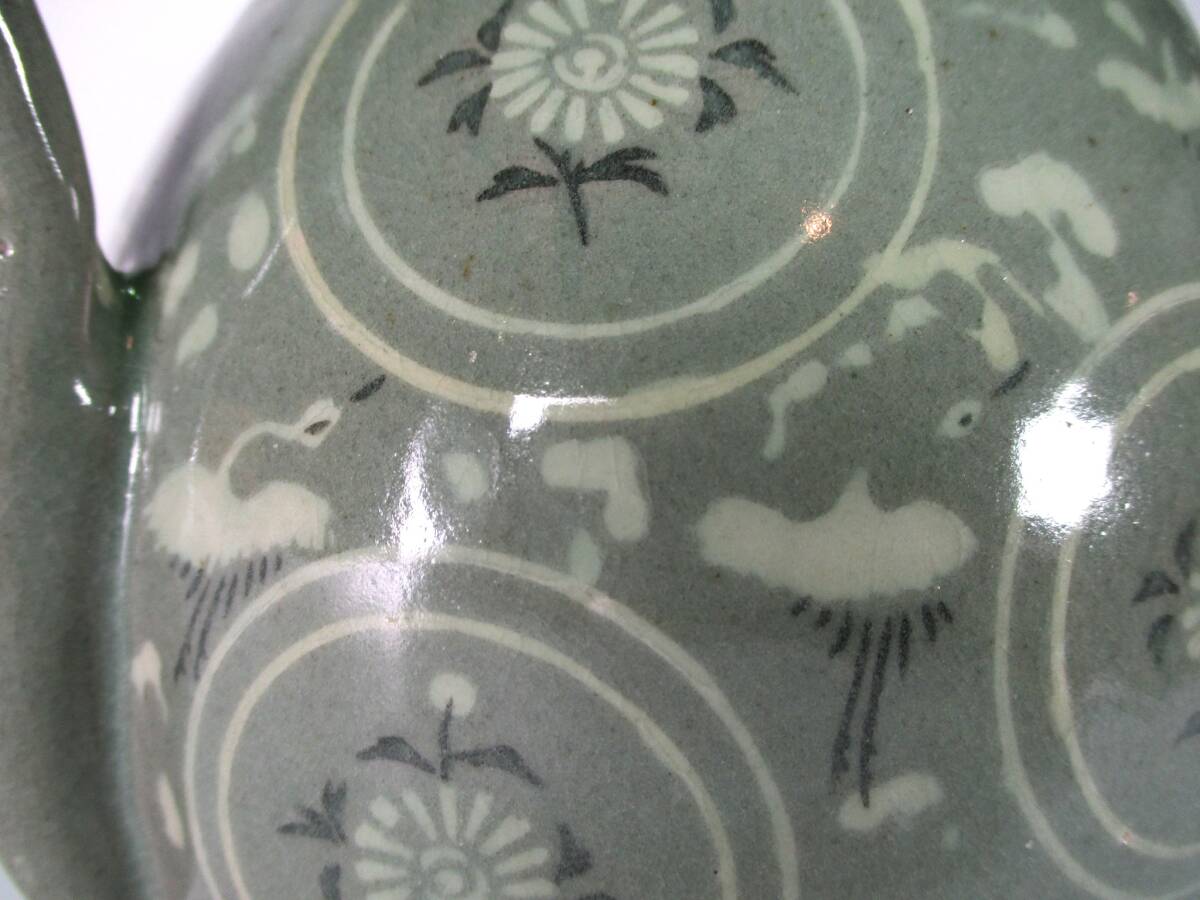 韓国青磁 高麗青磁 白黒象嵌 人間国宝 柳海剛 作 水注 茶道具