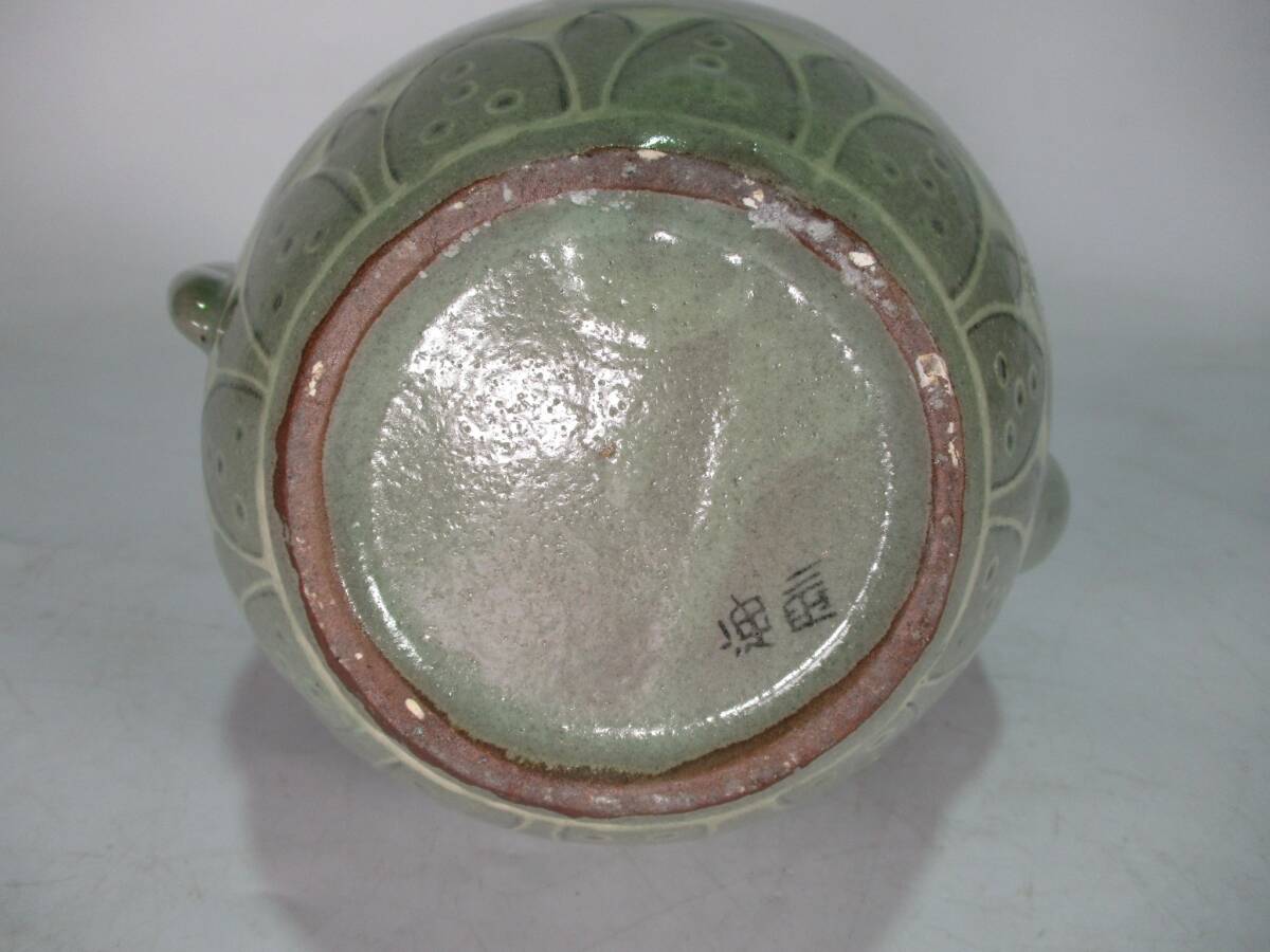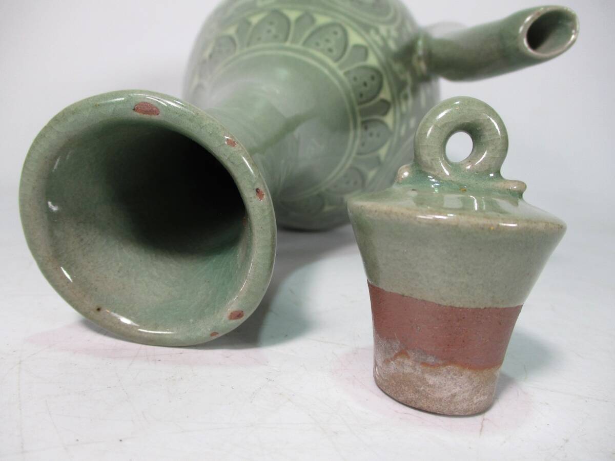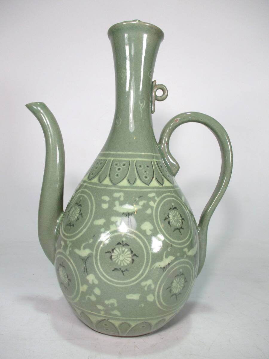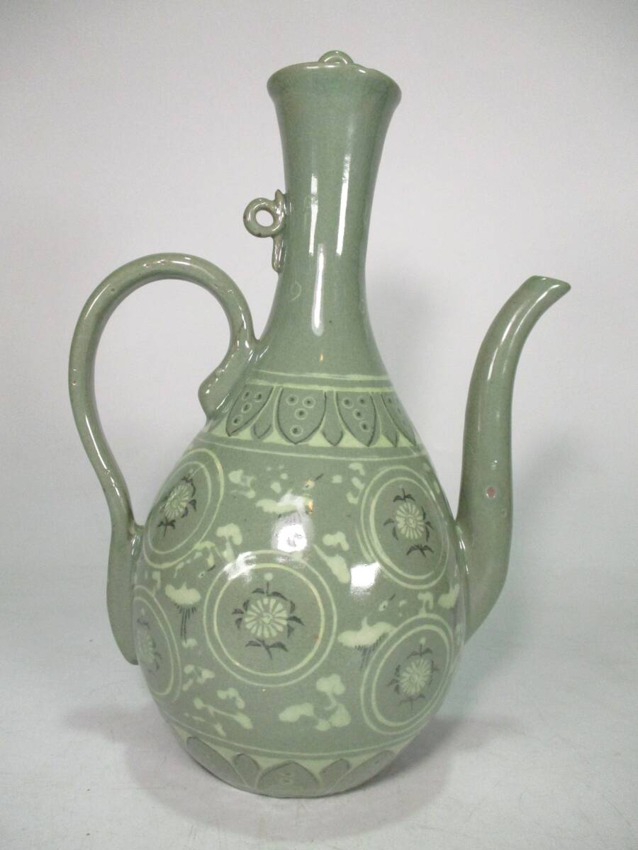 韓国青磁 高麗青磁 白黒象嵌 人間国宝 柳海剛 作 水注 茶道具