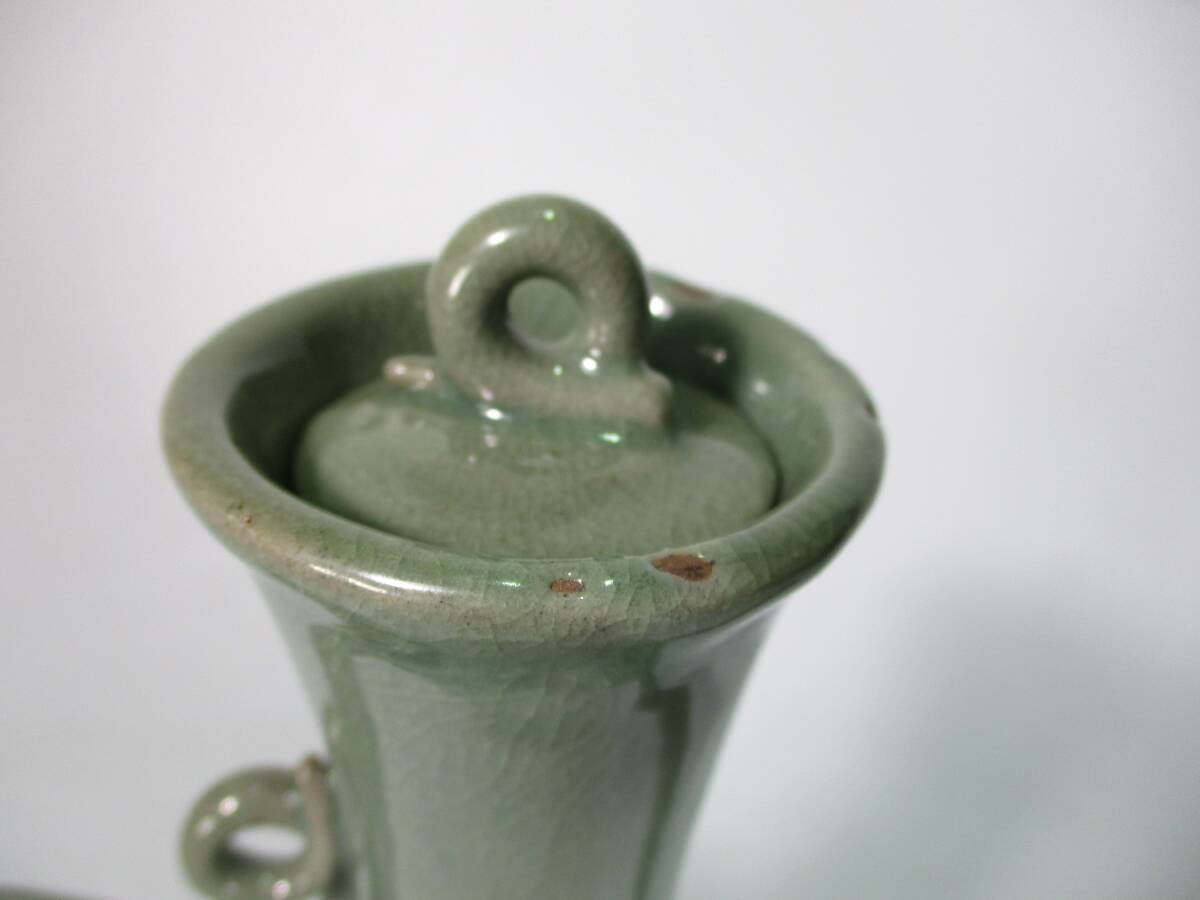韓国青磁 高麗青磁 白黒象嵌 人間国宝 柳海剛 作 水注 茶道具