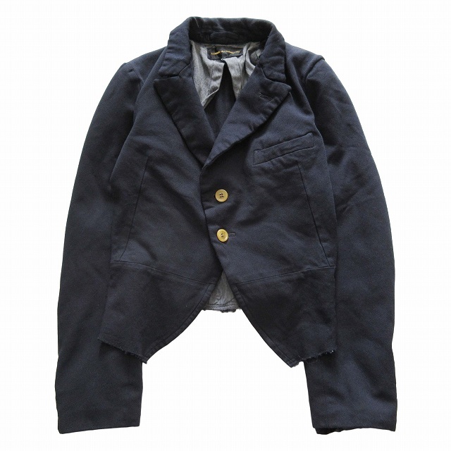 美品 04ss vintage コムデギャルソン COMME des GARCONS ポリエステル縮絨 テーラードジャケット ポリ縮 ブレザー クロップド丈 S 紺