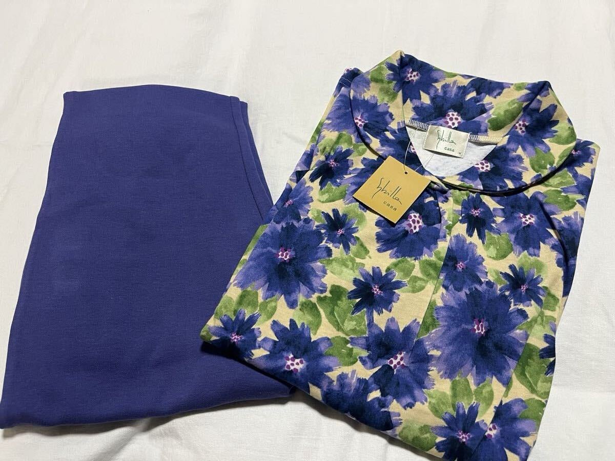 長袖パジャマ (レディース M) シビラ 綿100% 新品 NAIGAI 紫の花柄 ホームウエア 送込 女性用