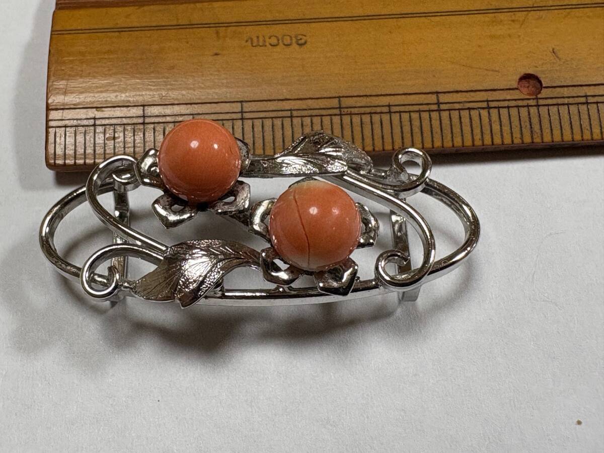 サンゴ 帯留め ブローチ