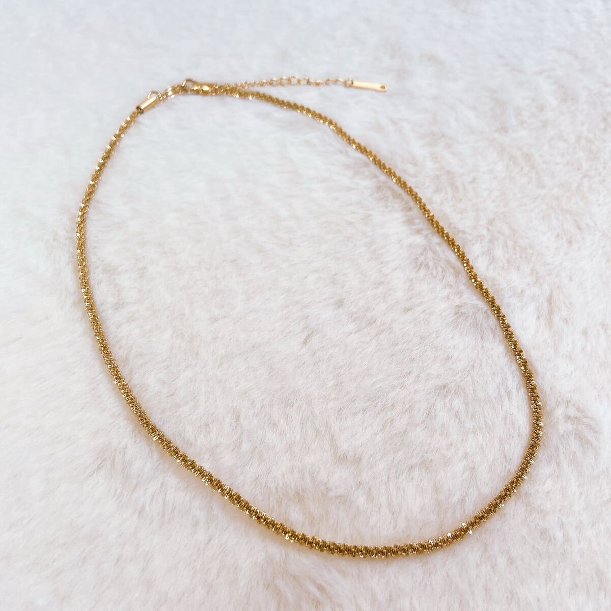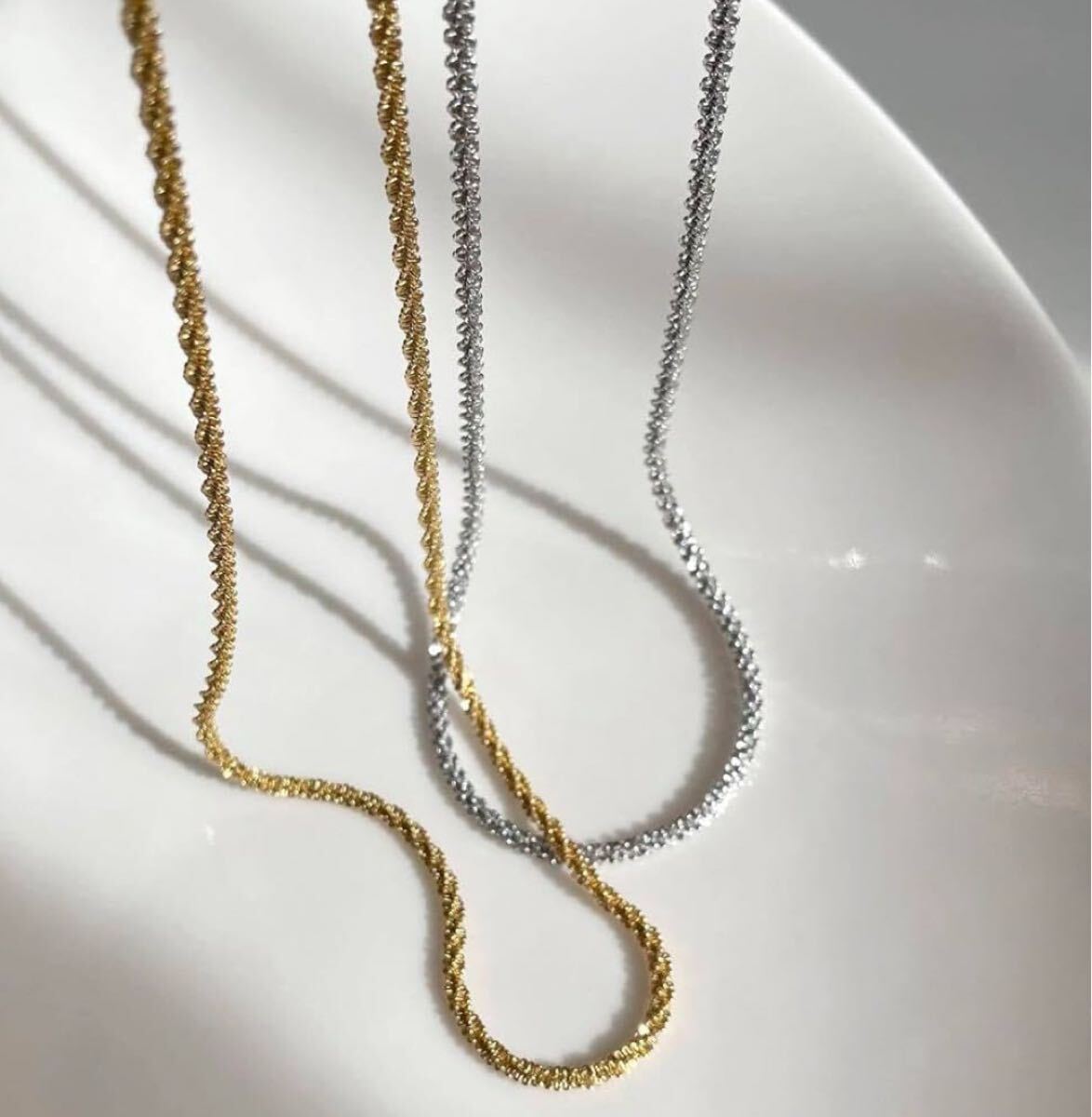 ダイヤモンドカットチェーンが光を反射し、上品で高級感のある輝きを演出します。