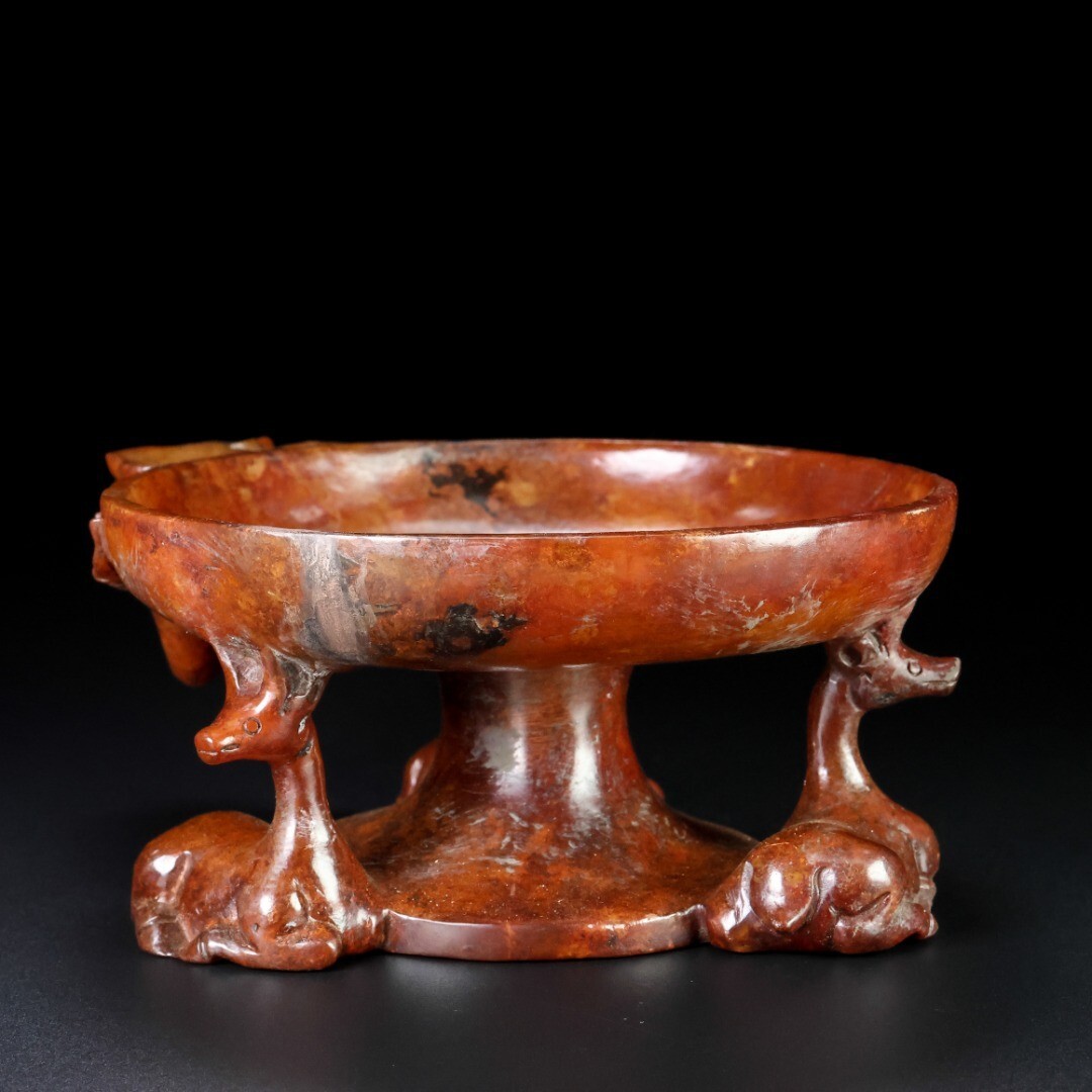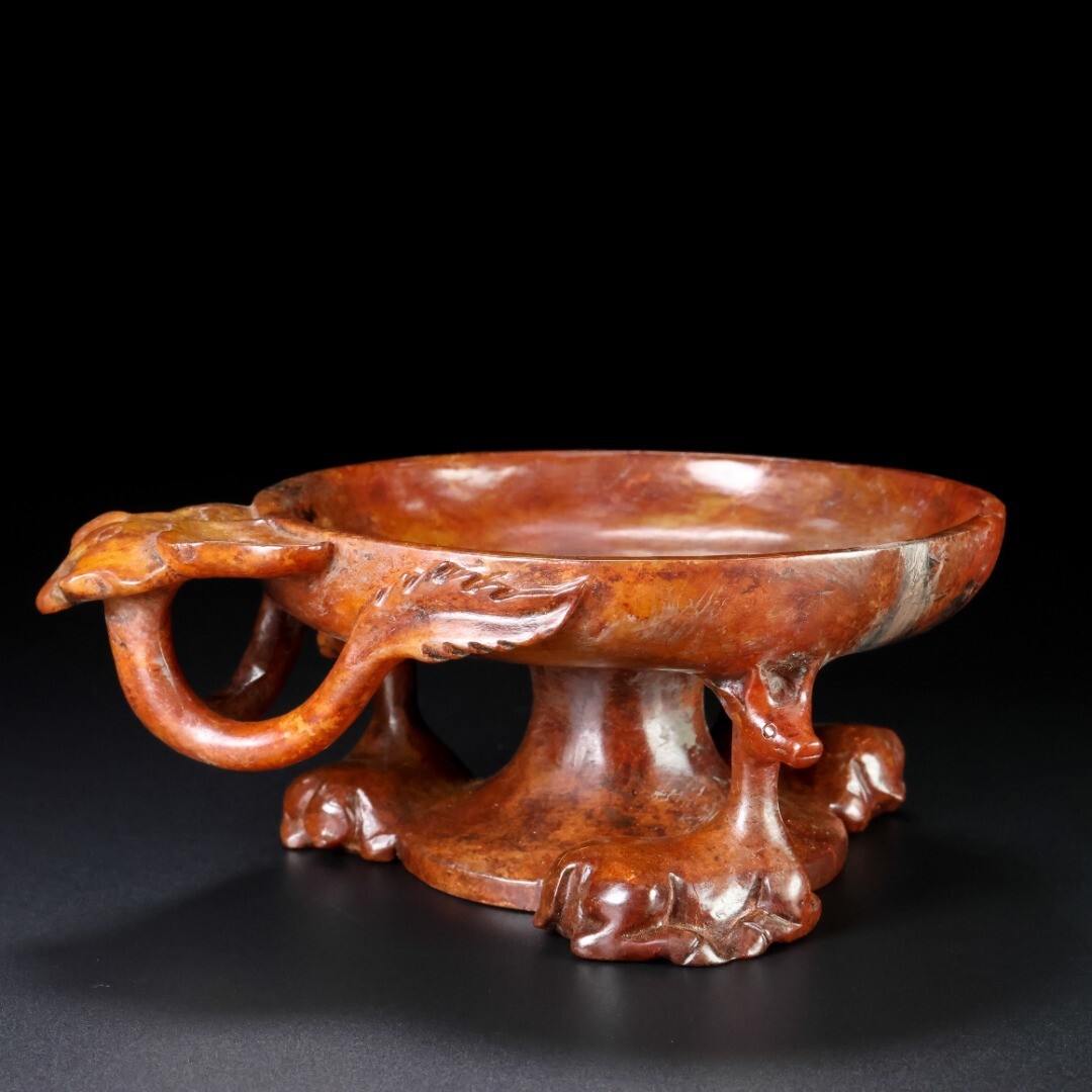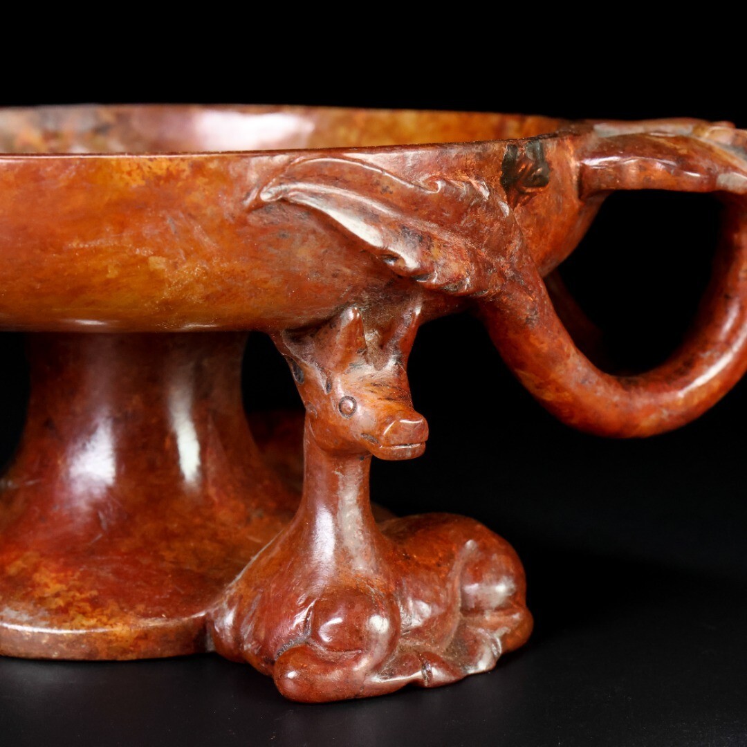 「戦漢時期 和田玉 高古玉彫り 鹿洗」極細工 擺件 中国古賞物 古美術 旧蔵出