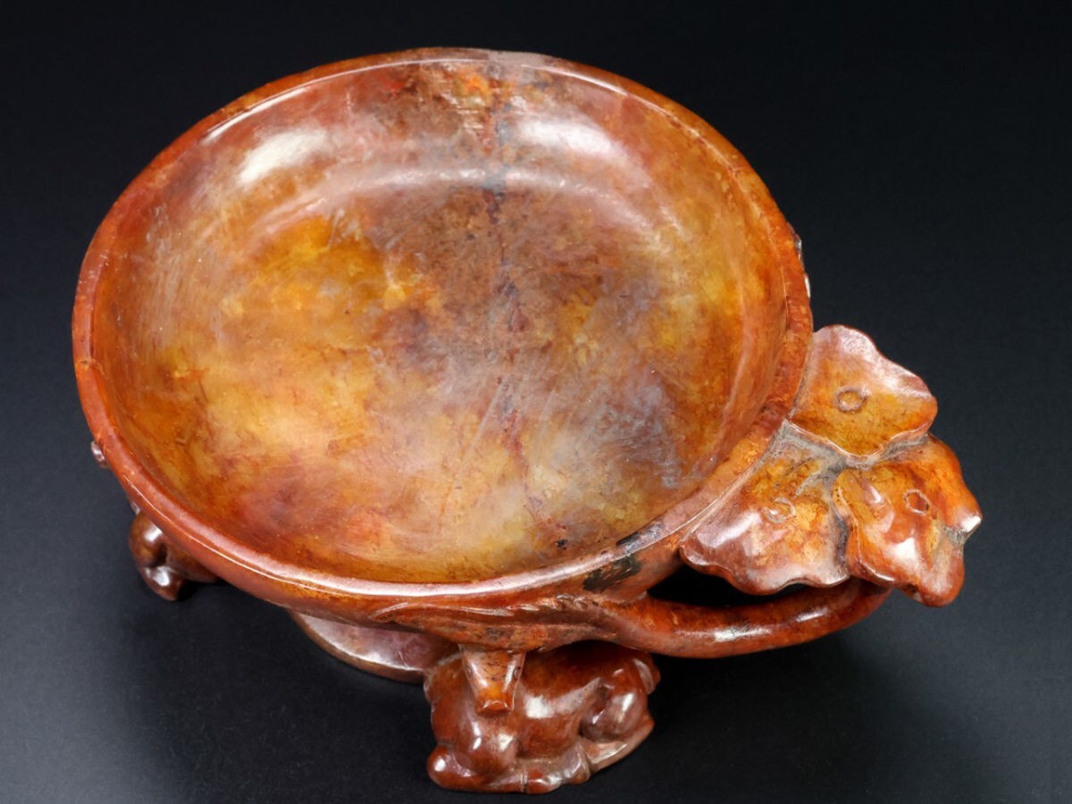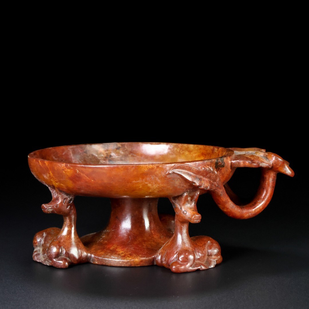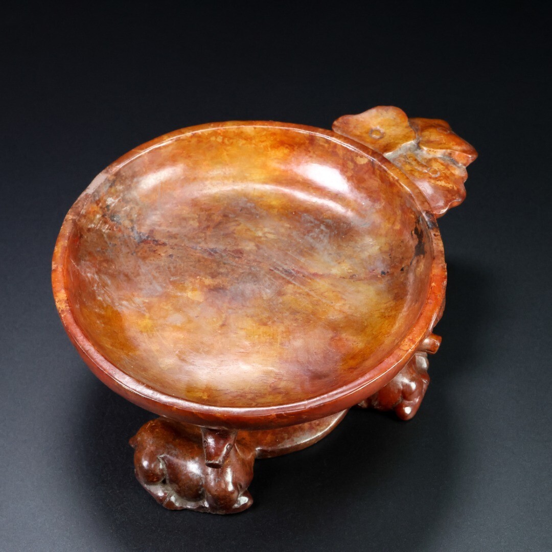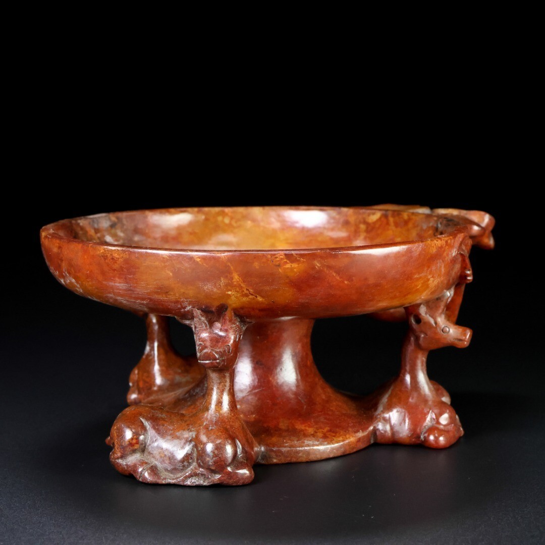 「戦漢時期 和田玉 高古玉彫り 鹿洗」極細工 擺件 中国古賞物 古美術 旧蔵出