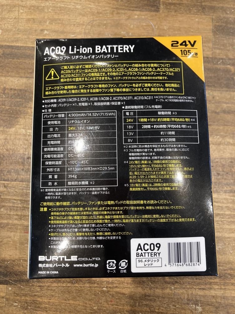 バートル ■商品名 空調服用バッテリー ■型番 AC09 |