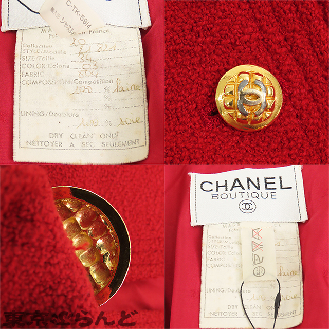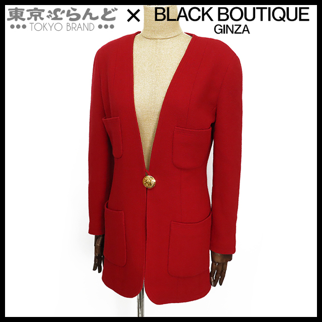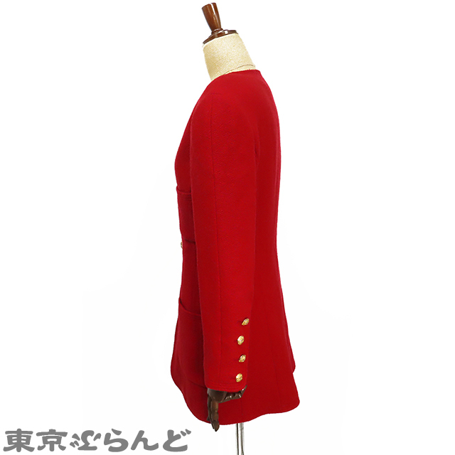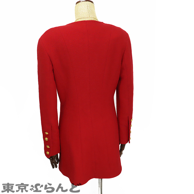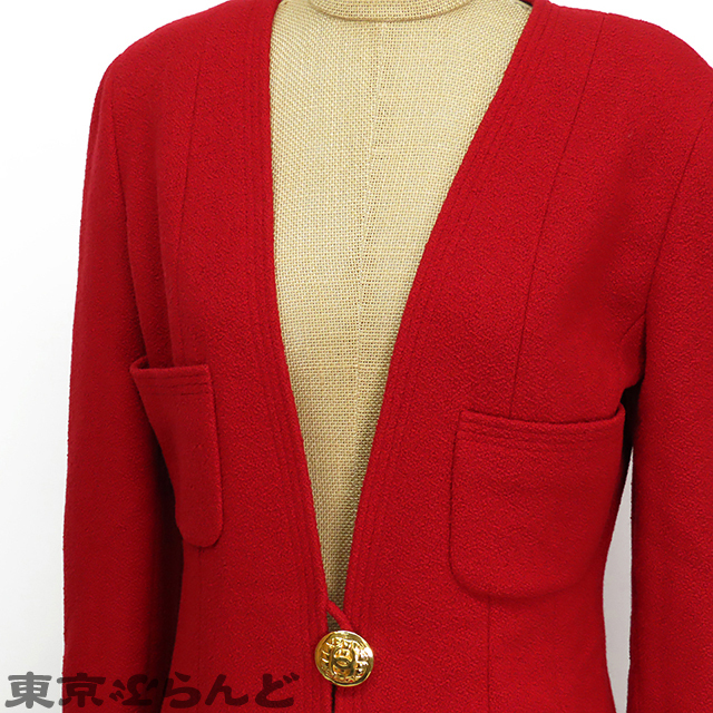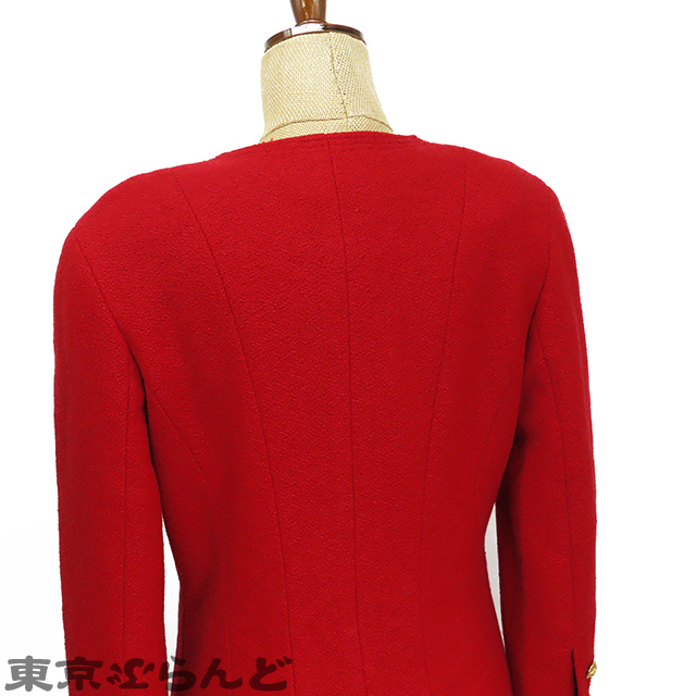 101783048 シャネル CHANEL ノーカラージャケット レッド 赤 ウール ココボタン 肩パット入 34 アウター レディース ヴィンテージ