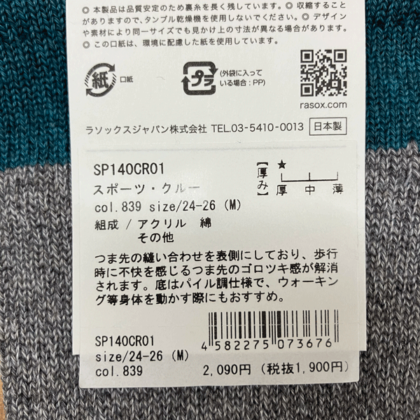 ご覧いただきありがとうございます。ラソックスのスポーツ・クルーで新品未使用での出品です。