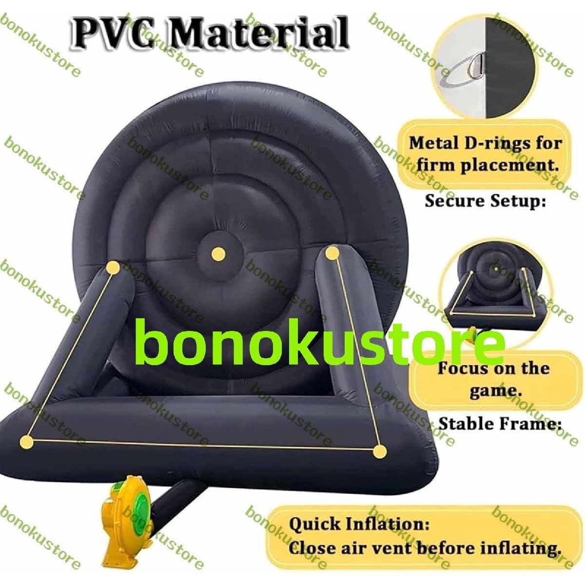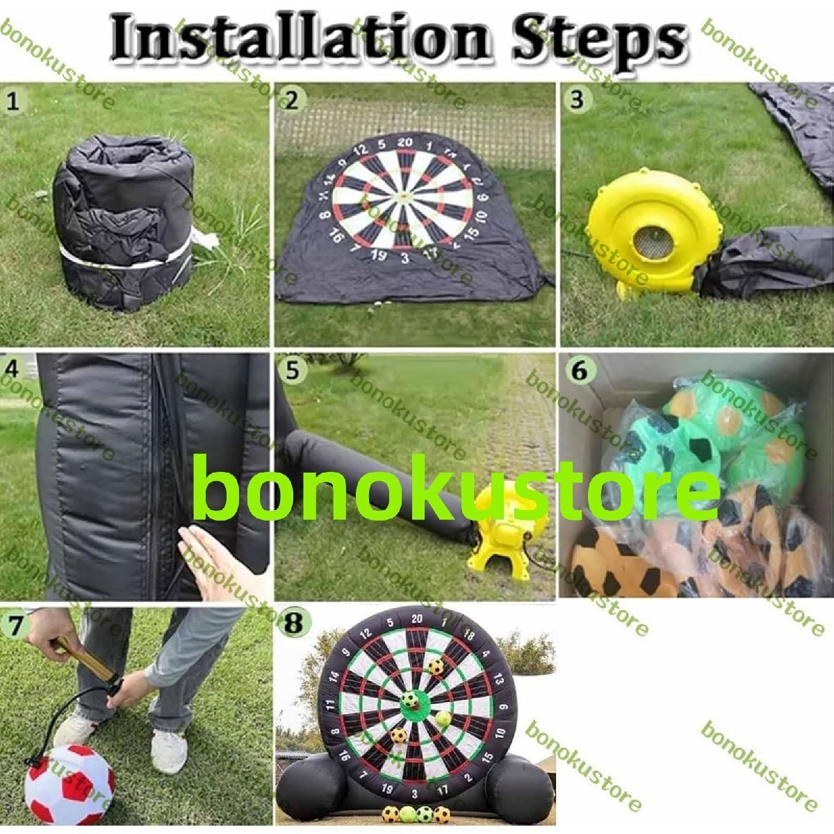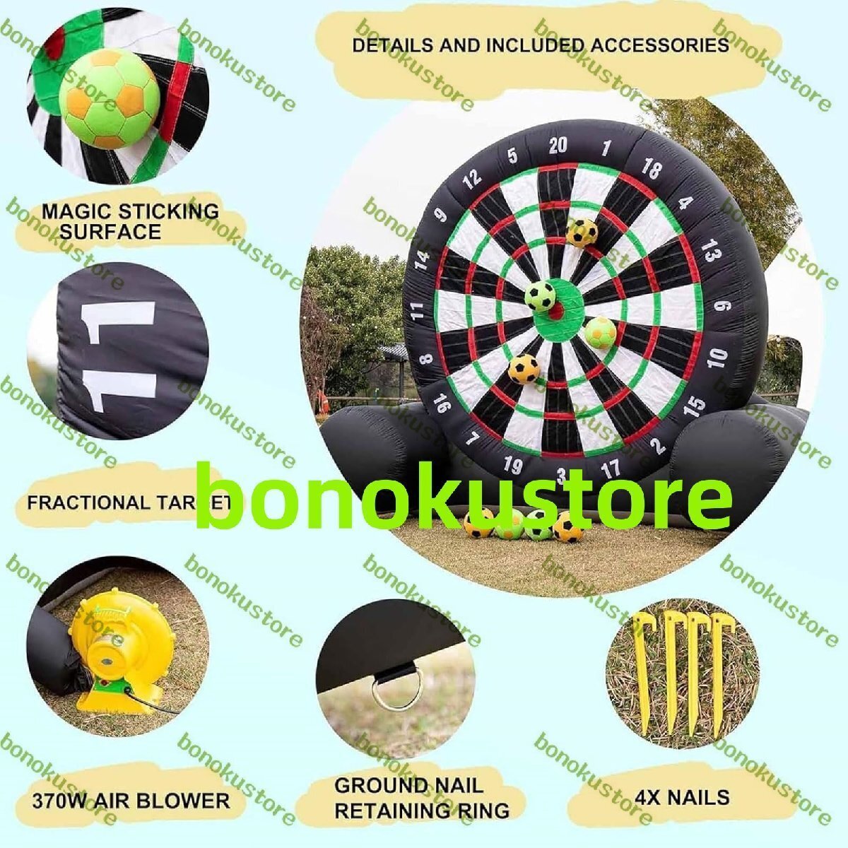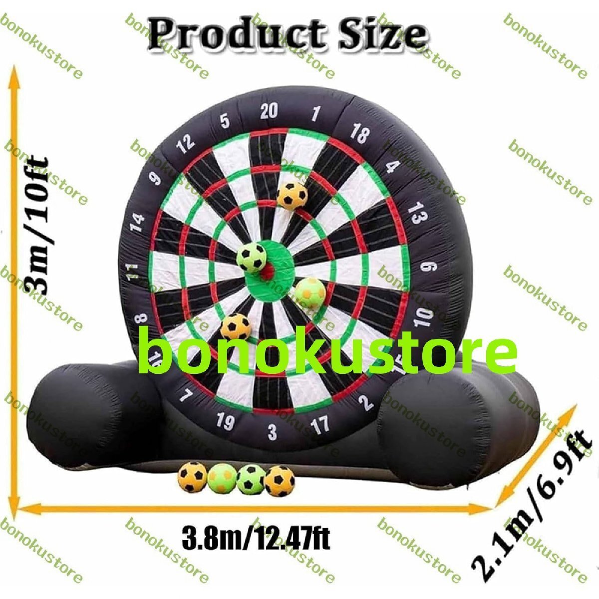 商品の説明 名称: サッカートレーニング機器 寸法: 12 x 6.9 x 10 フィート (3.6 x 2.1 x 3 メートル) 素材:420D布 電力: 370W ヘアドライヤー 重量: 15 kg パッケージ内容: インフレータブルフットボールダーツボード1個 8倍のサッカー ヘアドライヤー1個 修理ツールキット