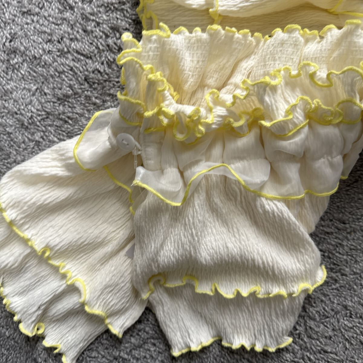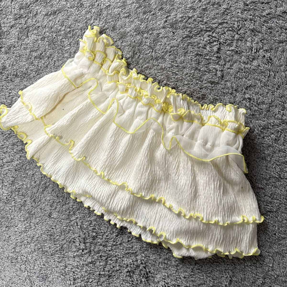 | こども服 ボトムの上に穿く配色メロウフリルベルトスカートです。 未使用ですがタグはついていません。 サンプル品のため品質ネームや襟ネームはついていません。 自宅保存なので細かい事を気になさる方は ご入札を避けて下さいね♪ ボタンでウエストの調節ができます。 サイズはFサイズです。 140から160サイズぐらいです。 平置きでウエスト幅35センチ 丈22センチ 素人なので多少の差はご了承ください。 実際のお色と画像は光の具合により 多少異なる場合があります。 | |||