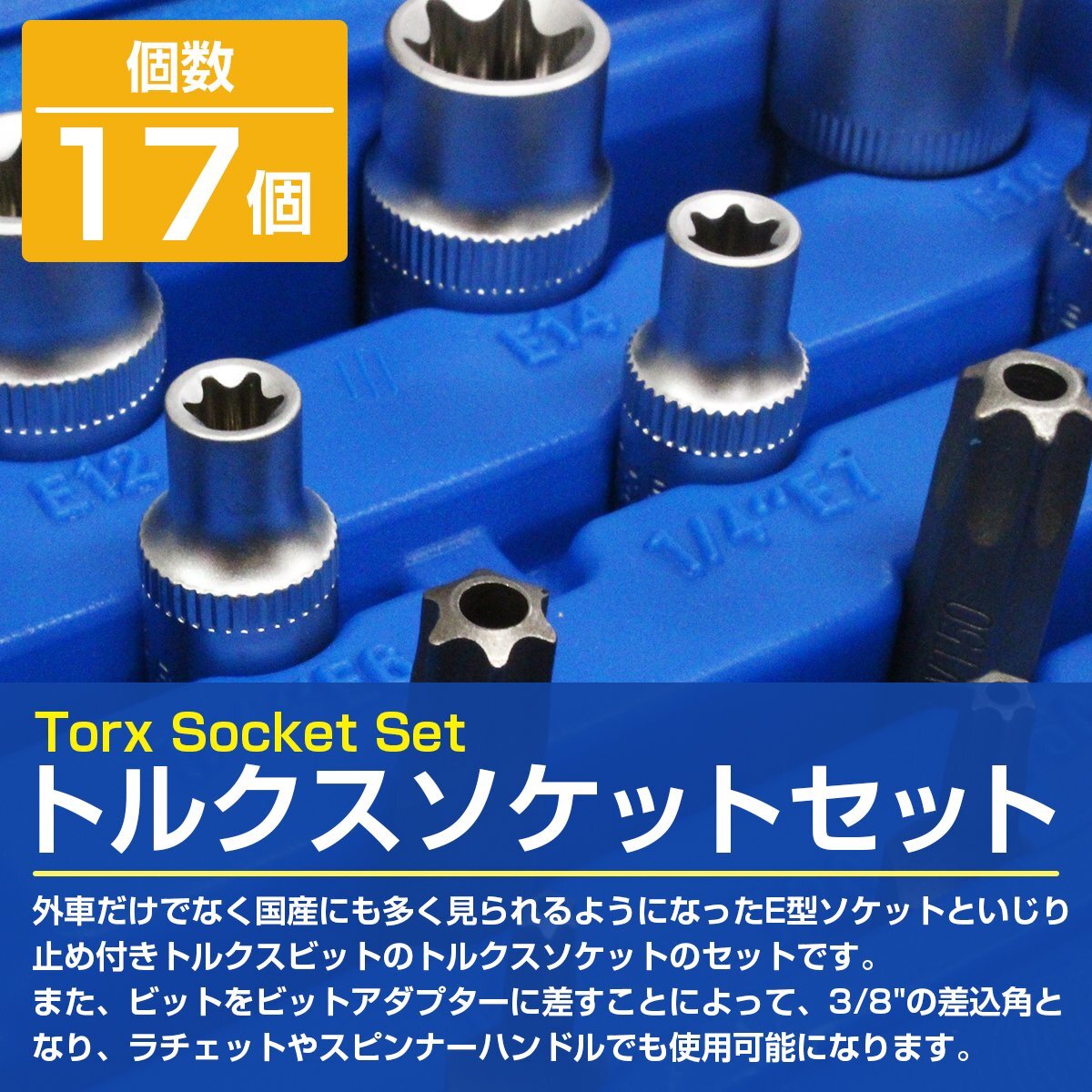 E型トルクスソケット/トルクスビット(いじり止め付き) セット 17個 9.5mm 6.3mm クロムバナジウム鋼 工具 修理 DIY 日曜大工