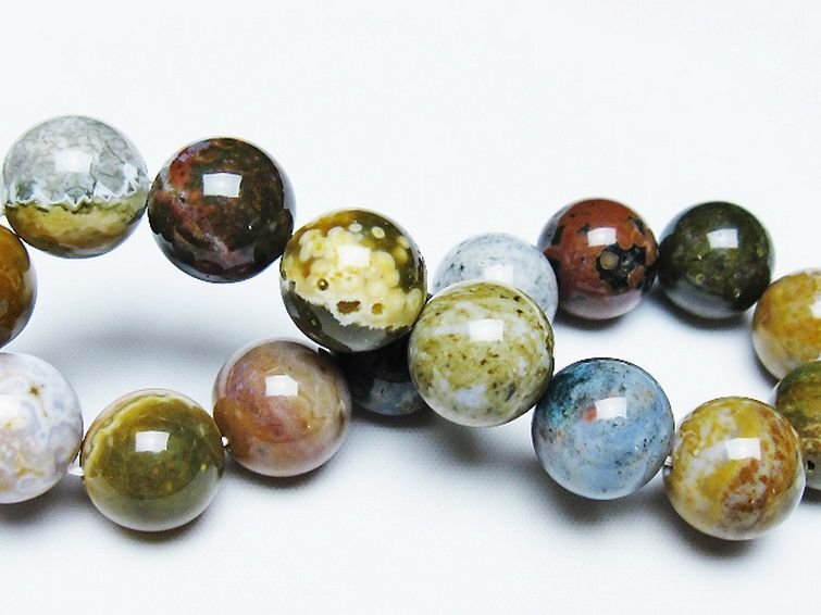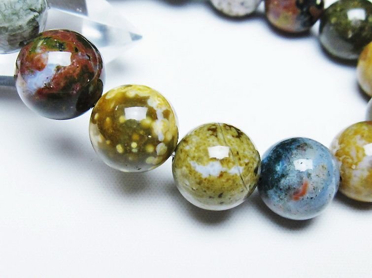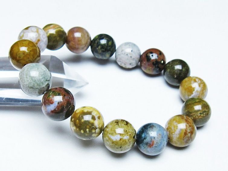| ■商品名: オーシャンジャスパー ブレスレット ■商品ID: T153-3420 ■商品重量:約 48.9g ■商品サイズ:内周約:165mm(±5mm)粒直径約:13mm(±0.5mm) 【ジャスパー(碧玉)】 ジャスパーは石英の結晶に様々な不純物が混じり結合した鉱物で、アゲートやカルセドニーと同じ仲間です。 構成が似ているため分類が難しいのですが、基本的に不純物の割合が多く不透明のものがジャスパーとされています。 抽象画のような味わい深い模様を持つものや鮮やかな色合いを持つものなど多彩な表情を持ち、個性を楽しめる石のひとつだといえるでしょう。 ジャスパーは日本にも縁が深く弥生時代から管玉や勾玉に加工され古くから装飾品として愛用されてきました。 なかでも島根県の玉造温泉は玉造石を使った勾玉の名産地だったといわれており、この土地で産出されたジャスパーは玉造石のひとつとして「出雲石」という別名でも親しまれています。 このほかにも青森県で産出される「綿石」もジャスパーを含んだ美石として知られています。 ジャスパーは正しい判断力と決断力をもたらすとされ、心身の疲労やストレスを癒すヒーリング効果も期待されます。 バランスをとる能力に長けた石ですので、仕事や人間関係でうまく立ち回りたい方や、生活に安定や平穏を望む方に特におすすめです。 ⇒ ジャスパーをもっと詳しく ◆ワンポイント情報 ジャスパーは不純物の成分によって色合いが大きく異なります。ヘマタイトを含有したものは赤色、クローライトを含有したものは緑色、クレイ粘土などの不純物が含有した黄色など、多彩な色合いのジャスパーが存在します。 |
