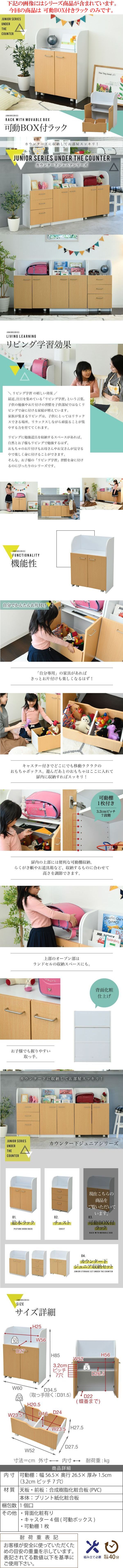カウンター下に収納できる可動ボックス付きラックです。 扉内のキャスター付きボックスに遊んだおもちゃはお片付け♪扉内に収納すれば見た目もスッキリ。 可動棚収納付きなので、スケッチブックや文房具の収納にも最適です。 |