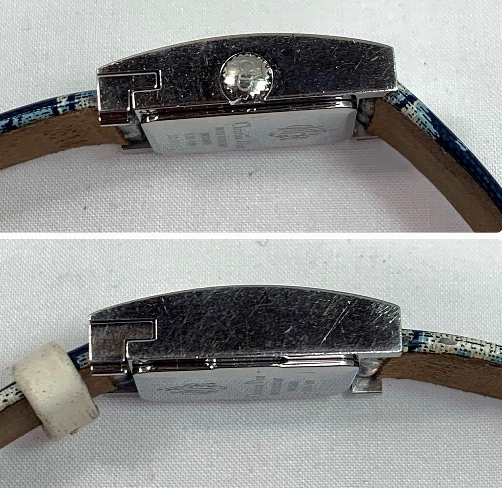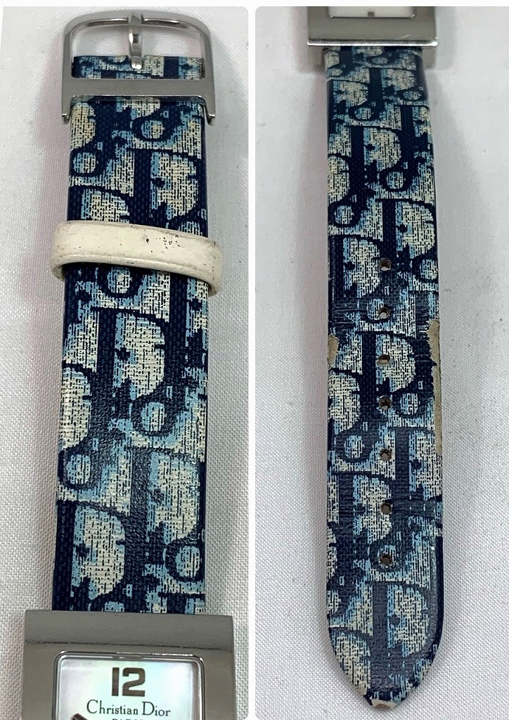細かいキズや、ベルトの劣化があります。付け替えのベルトも劣化で割れ、剥がれがございます。
