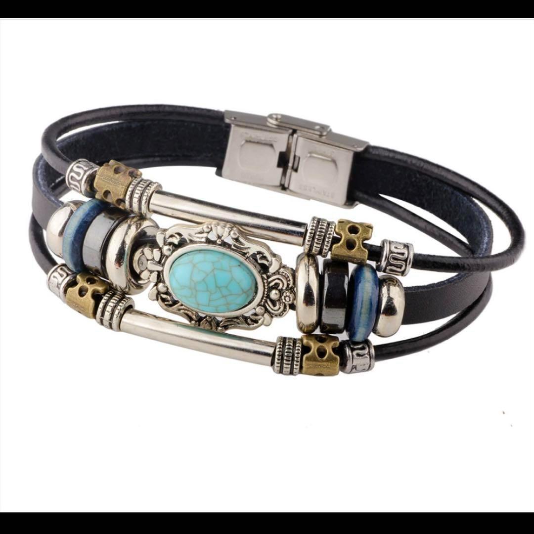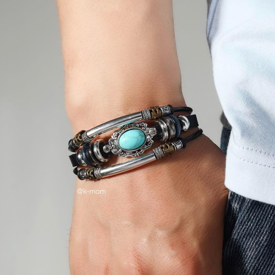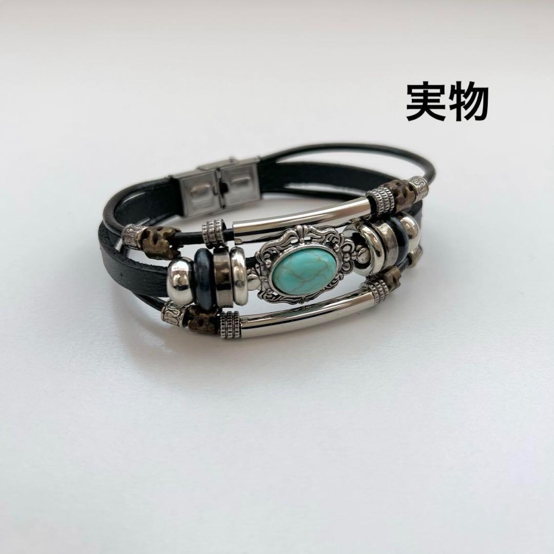 【素材】フェイクターコイズ、PUレザー、ステンレス、合金