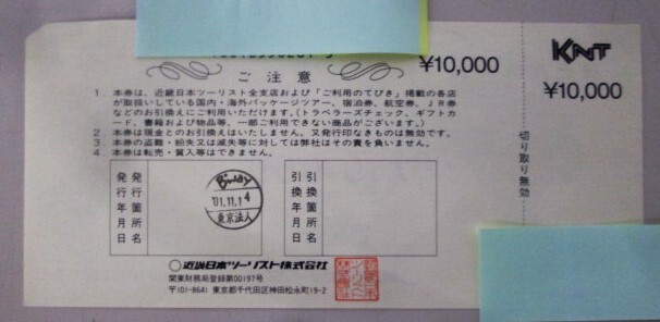 ■近畿日本ツーリスト 旅行券 東芝定年退職者招待旅行券 東芝共済会 10,000円 38枚 1,000円 10枚 合計48枚 額面390,000円分になります。 ■こちらの商品は買取品になります。 ■商品の状態 ①未使用です。 近畿日本ツーリスト ツーリスト旅行券 合計48枚 ・¥10,000 東芝定年退職者招待旅行券 37枚 ・¥10,000 東芝共済会様 1枚 ・¥1,000 東芝共済会様 10枚 ②買取、長期保管・保存による傷やイタミ、汚れ等があります。 状態の悪い物も入っているかと思います。 ③細かいことを気にされる方は、入札をご遠慮くださいますようお願いします。 ノークレーム・ノーリターンでお願いします。 ■写真の状態の物がすべてになります。 ■ノークレーム・ノーリターンでお願いします。 配送は、ゆうパックのみ取り扱いになります。 ケースにプチプチの緩衝材を巻いただけでの発送となります。 ※新規の方は必ず質問欄にご連絡をしていただいてから、入札をお願い致します。 ※ご連絡の無い場合は入札を取り消させていただきます。 | ||