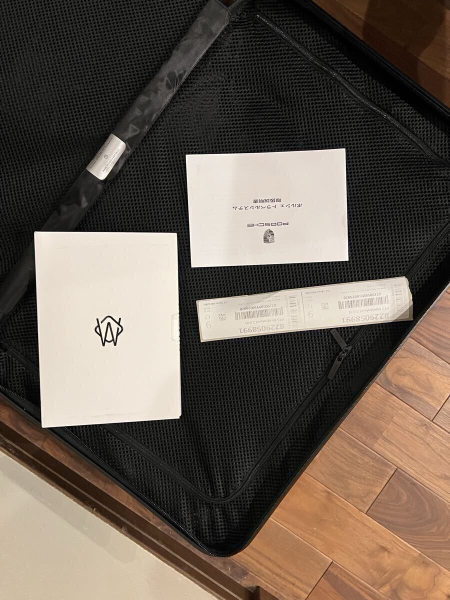 正規店ポルシェセンターにて購入後、未開封のまま保管しておりました。出品にあたり開封して検品しましたが、ロック及びホイール・ファスナーなどに不具合はなく、キズ凹み等の損傷もございません。ただ当方では把握できない僅かなスレなどの可能性も考えられますので、画像をご覧いただき充分に考慮いただいた上でご入札ください。取扱説明書等は画像のものが全てになります他、布製カバーが付属いたします。