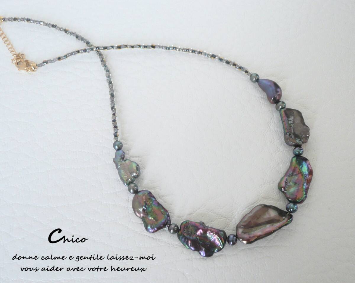 ◆48cm◆ブラック ビワ淡水パール・メタリックネイビーポテト ハンドメイドネックレス♪ ★★2点以上送料無料!★