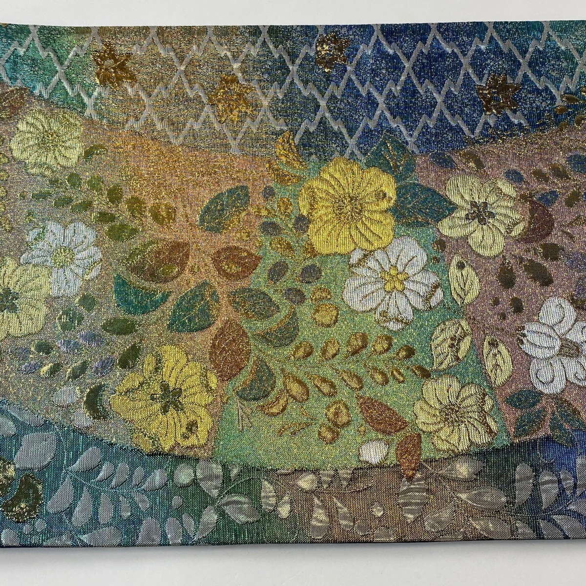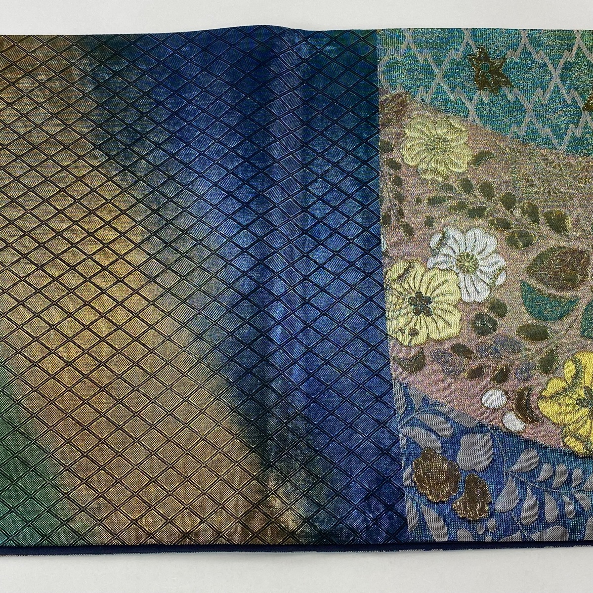 | 袋帯 美品 秀品 辻が花柄 松皮菱 金糸 箔 青緑 六通 正絹 【中古】 |