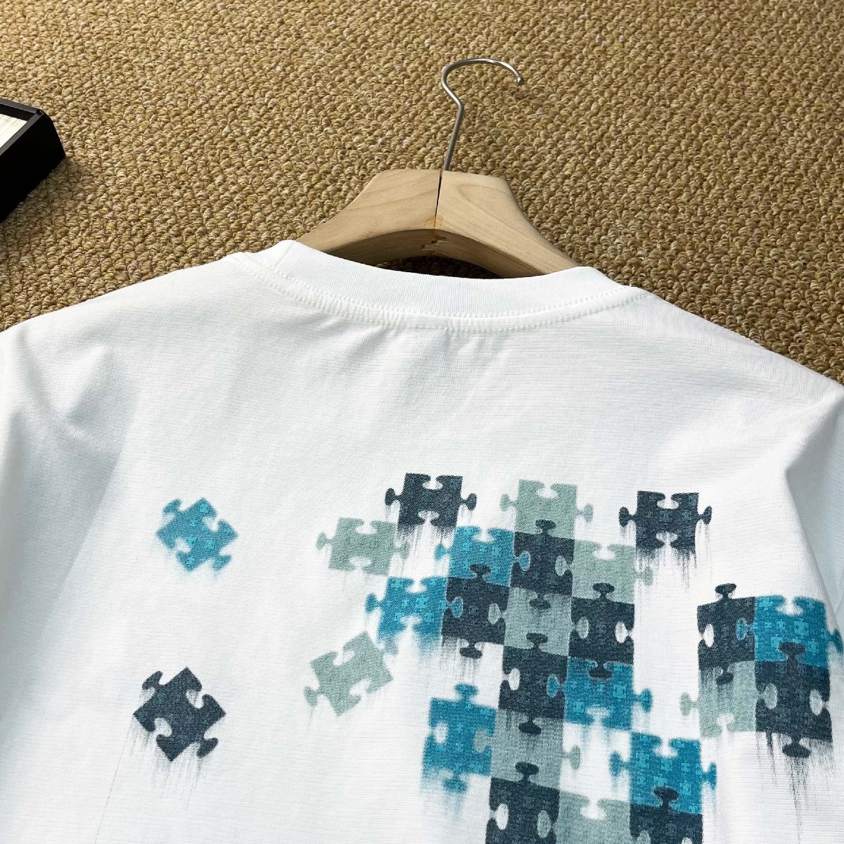 クルーネックデザインを採用しており、首周りにゆとりがあるため、締め付け感がなく、リラックスして着用できます。バックにはジグソーパズル柄を入れて、胸元にも英字柄の刺繍があり、周りの目を引いていつもと違う印象を狙います。一枚を着れば、コーデの主役となり全体を印象的に仕上げてくれます!