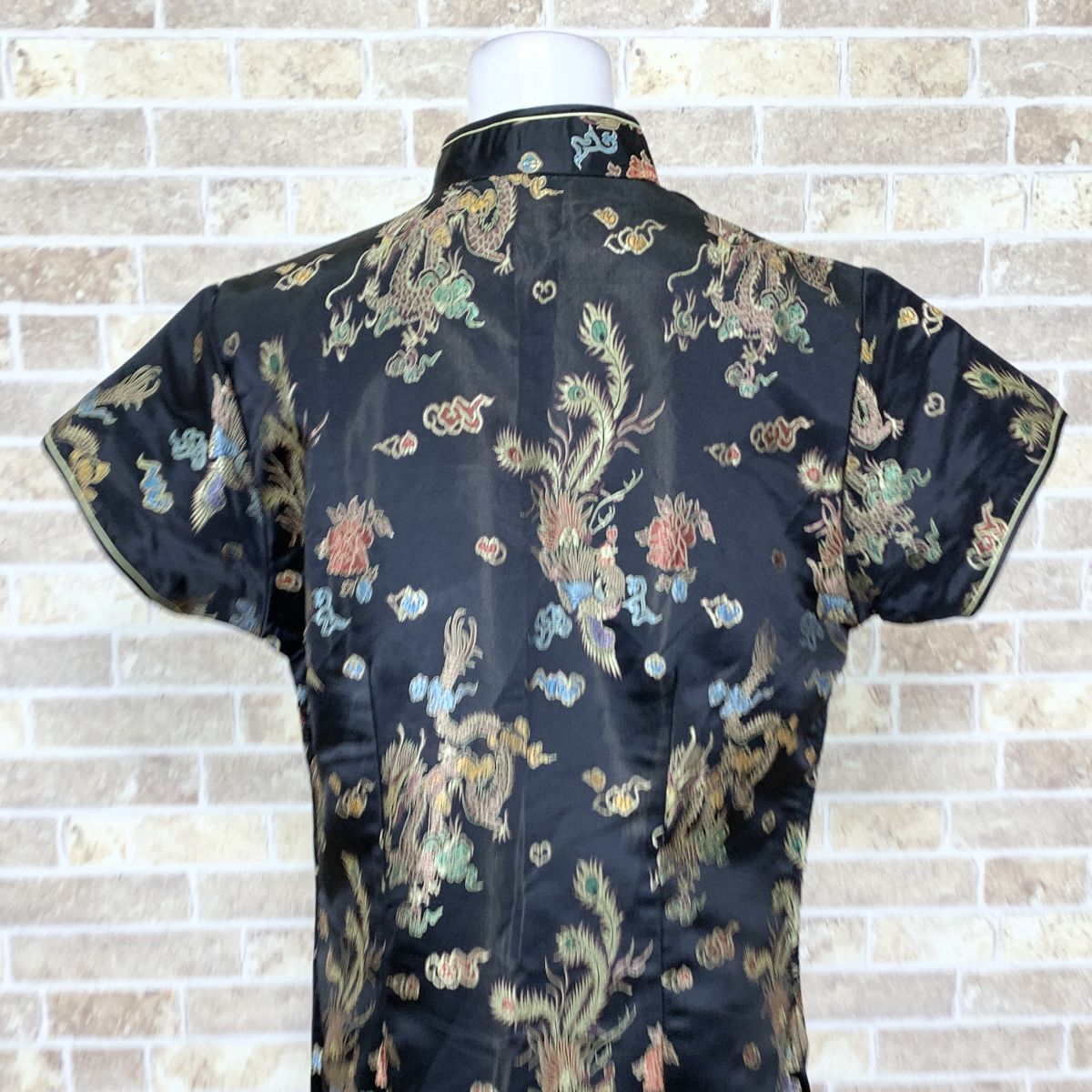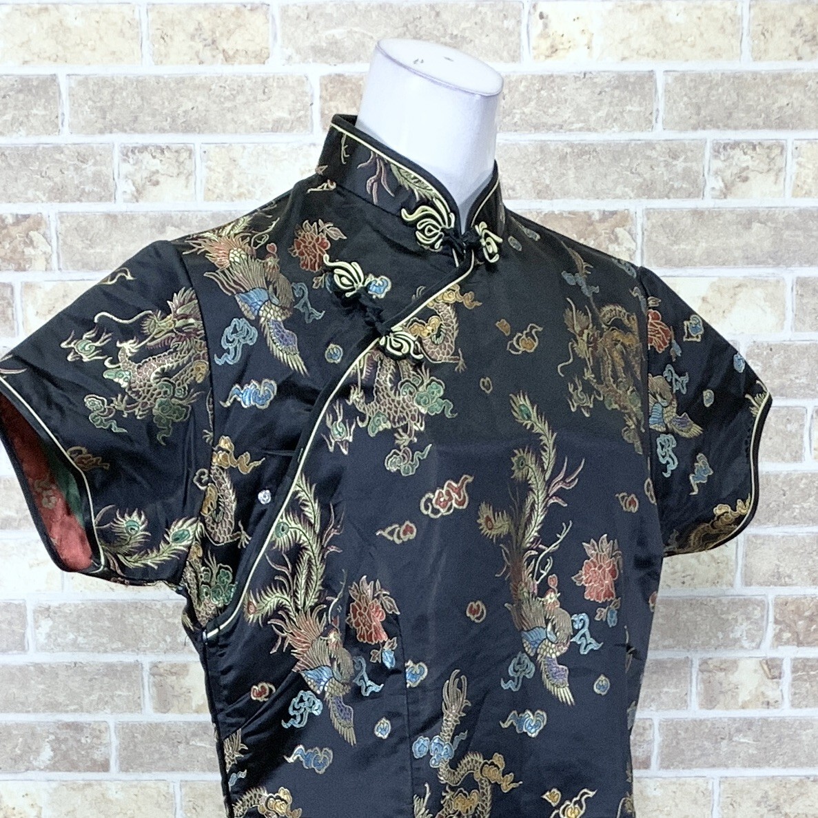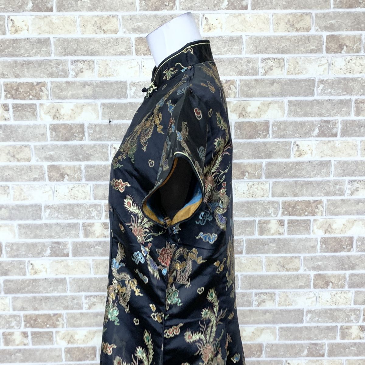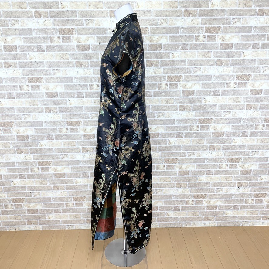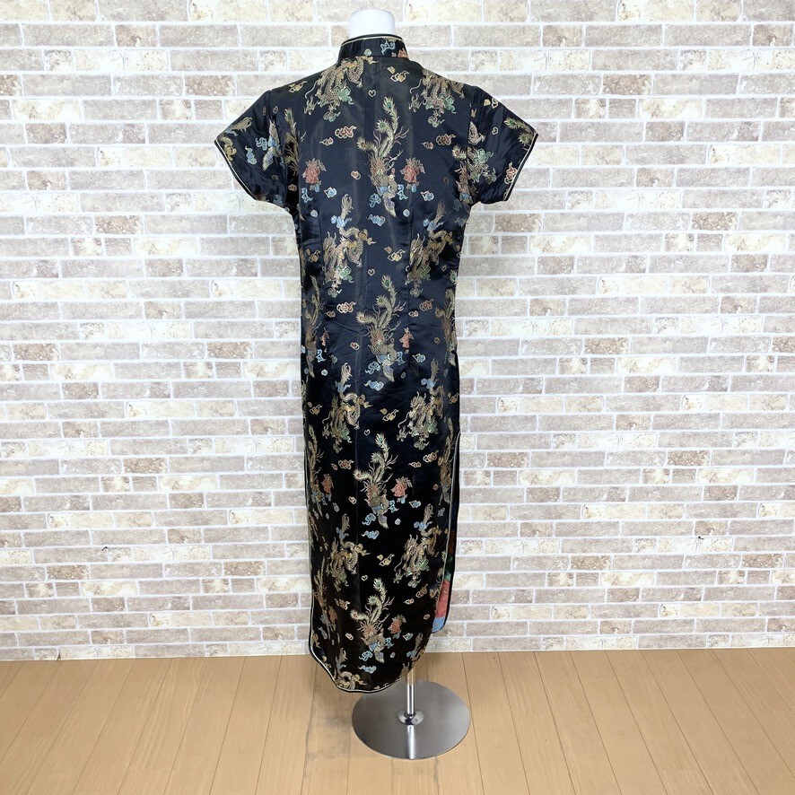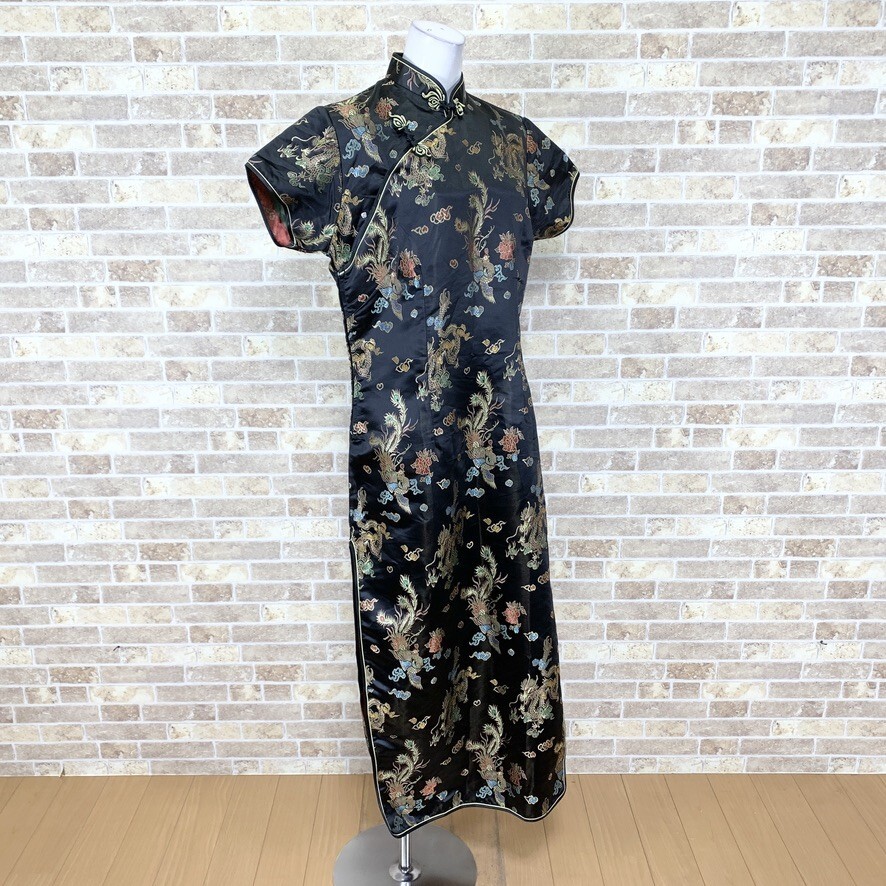 1円 チャイナドレス LAOGUDAI ロングワンピース 3XL大きなサイズ 黒柄 カラードレス キャバドレ フォーマル 中古15042