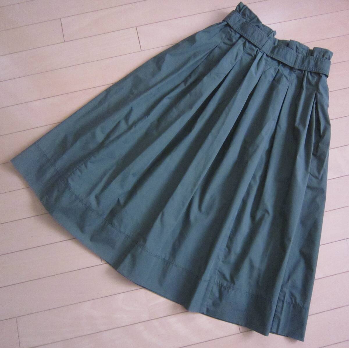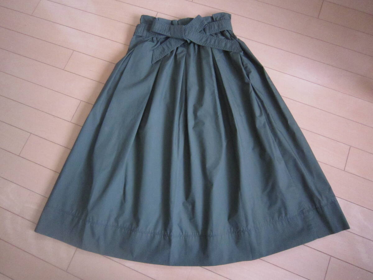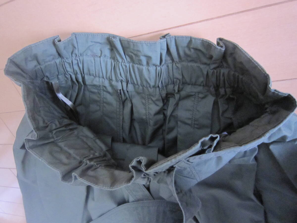 ◆超美品 ユニクロ ギャザー ロング スカート (リボン付き) W63㎝~ オリーブグリーン ◆送料\185◆