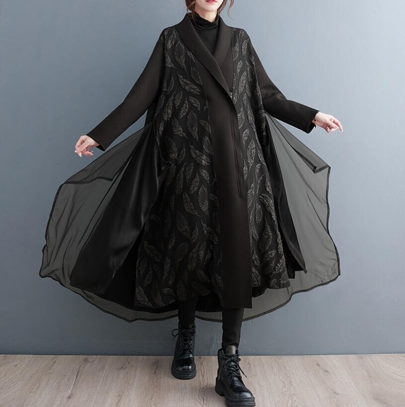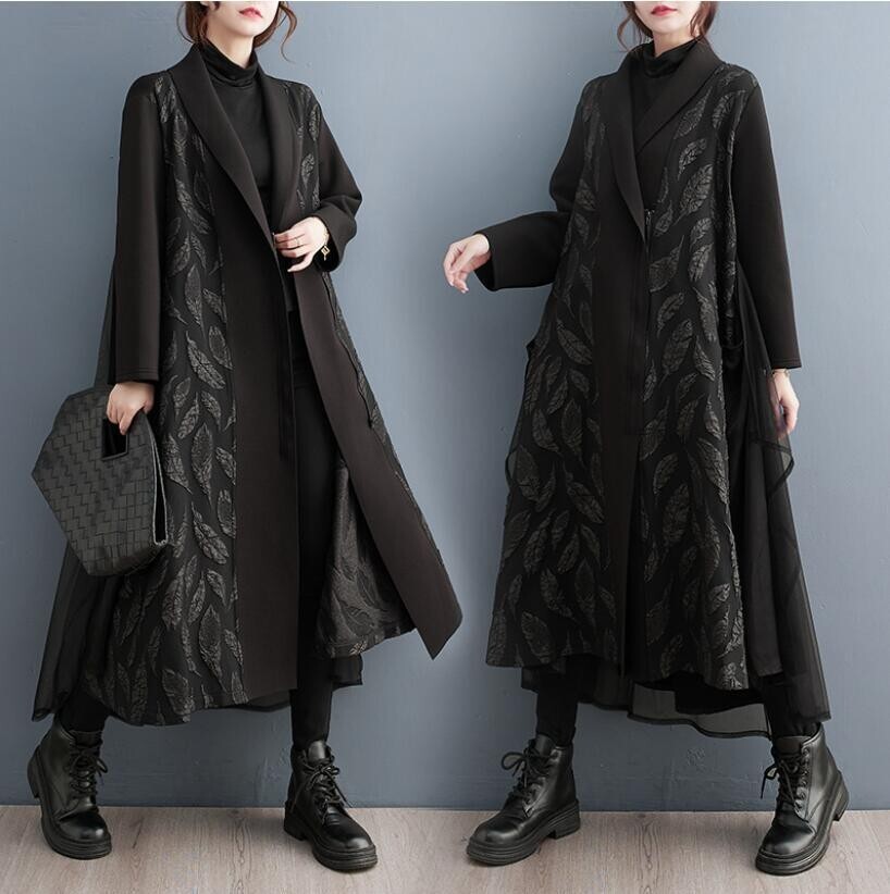 新品 秋 冬 新入荷 カジュアル ゆったり大きいサイズ レディース 花柄トップス +スカート 2点セット ロング丈 セットアップ白
