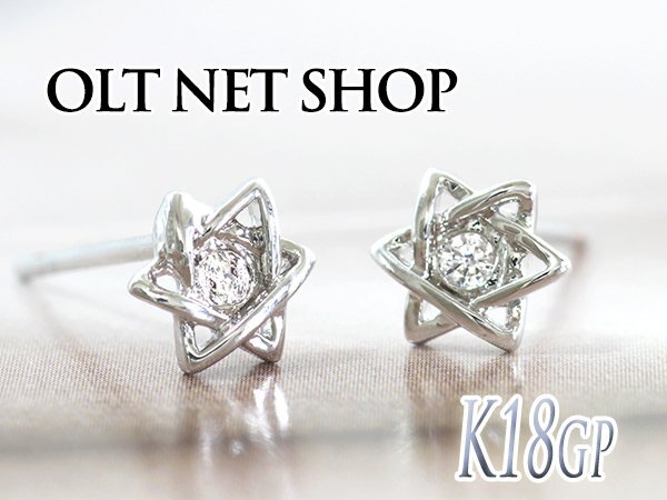 ピアス レディース スター 星 シルバー 18金 18kコーティング ホワイトゴールド シンプル 小さめ/K18GP CZダイヤ ヘキサグラムスターピアス