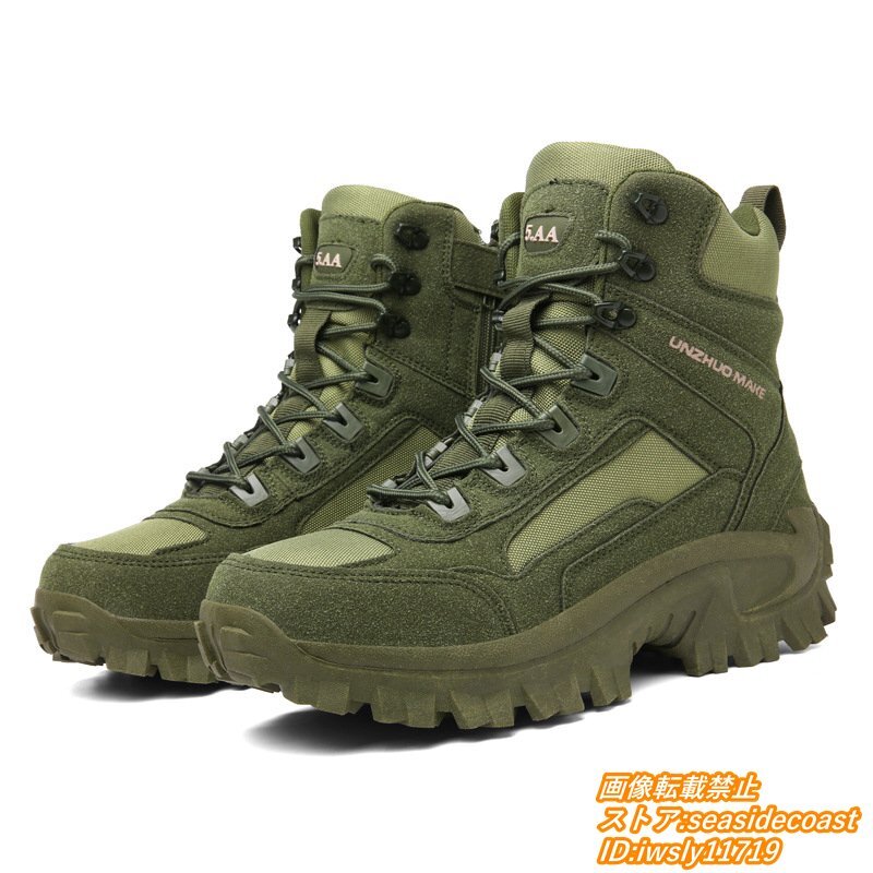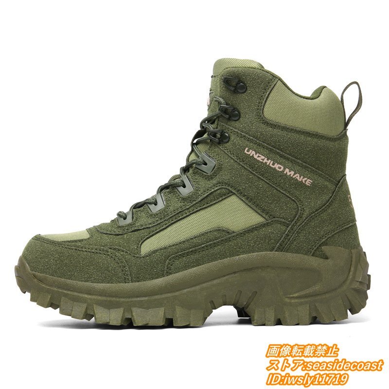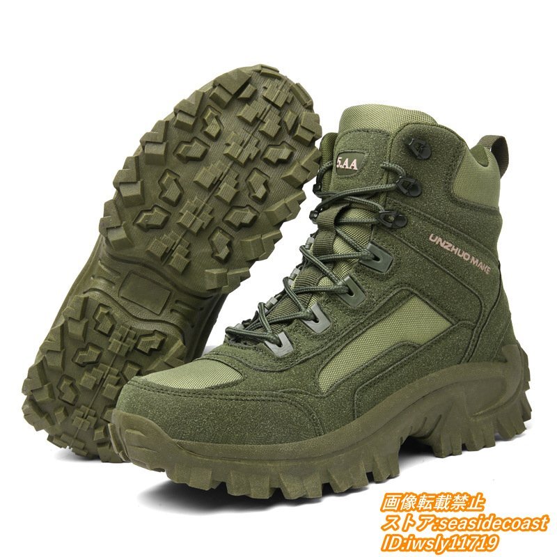 新品☆トレッキングシューズ メンズ 登山靴 アウトドア靴 ハイキング 撥水防滑 軽量 ブーツ ハイカット キャンプ 衝撃吸収 オリーブ 28.0cm