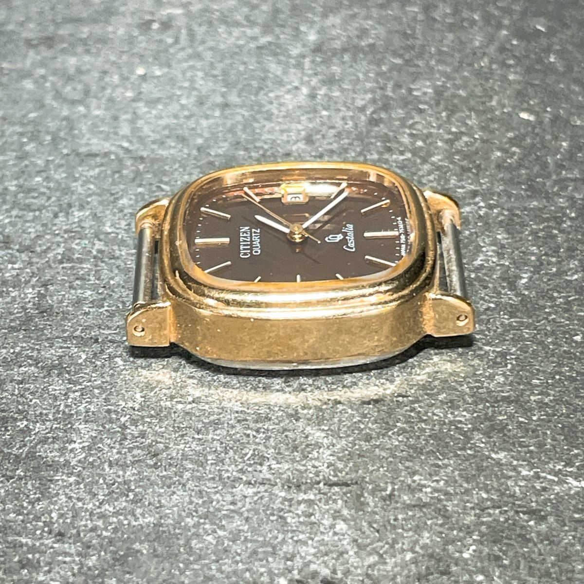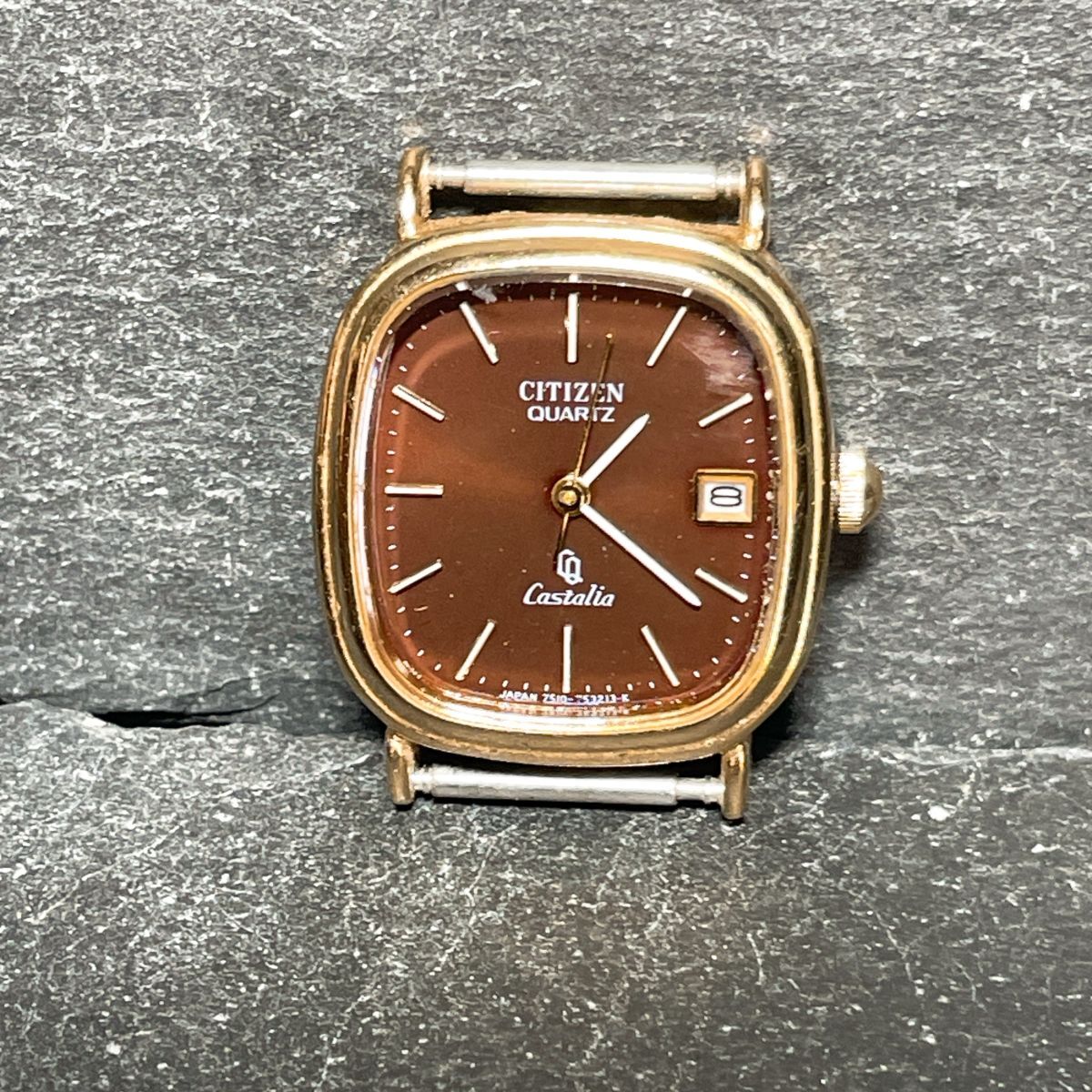 CITIZEN シチズン castalia カスタリア 4-751884 腕時計 アナログ クオーツ 3針 カレンダー ブラウン文字盤 新品電池交換済み 動作確認済み