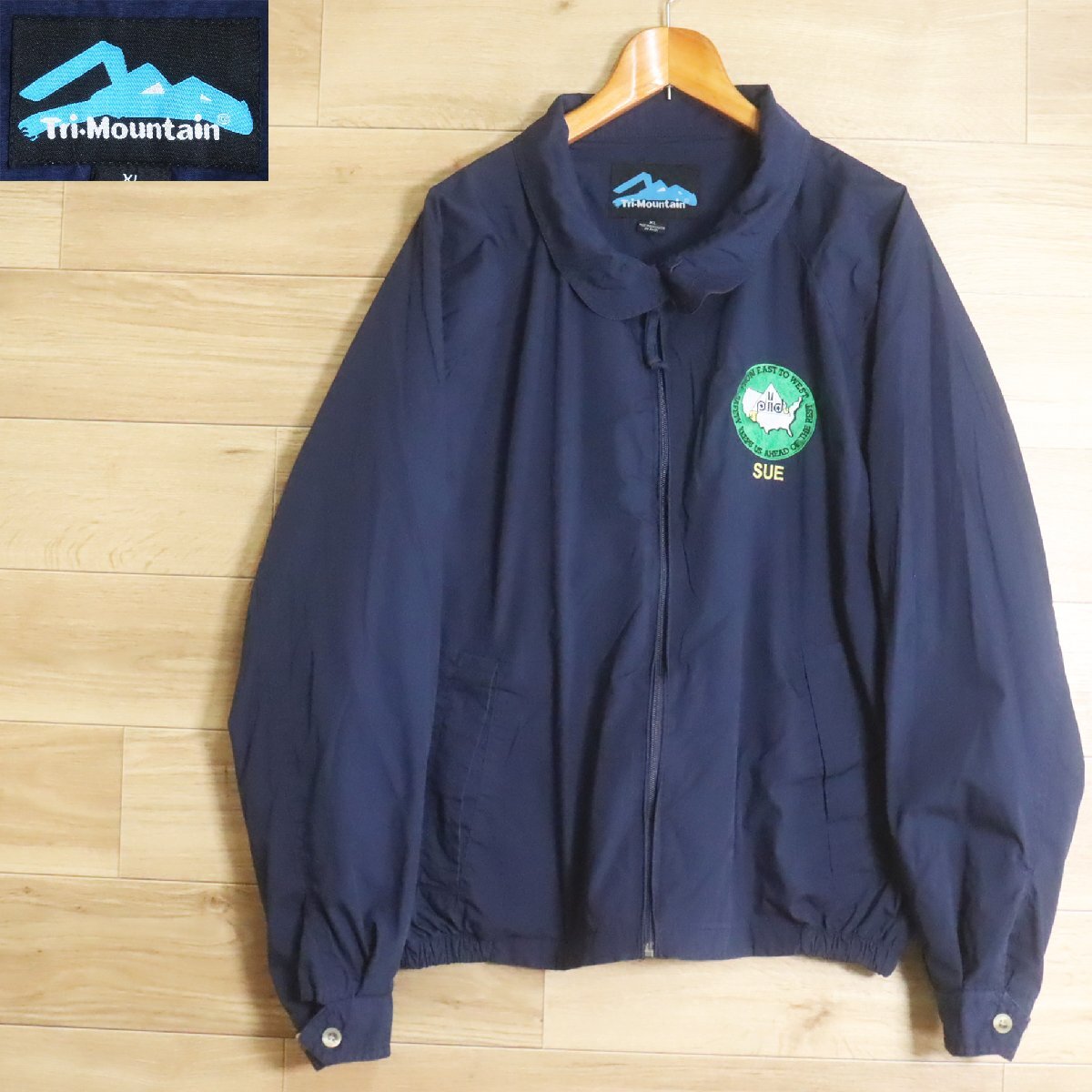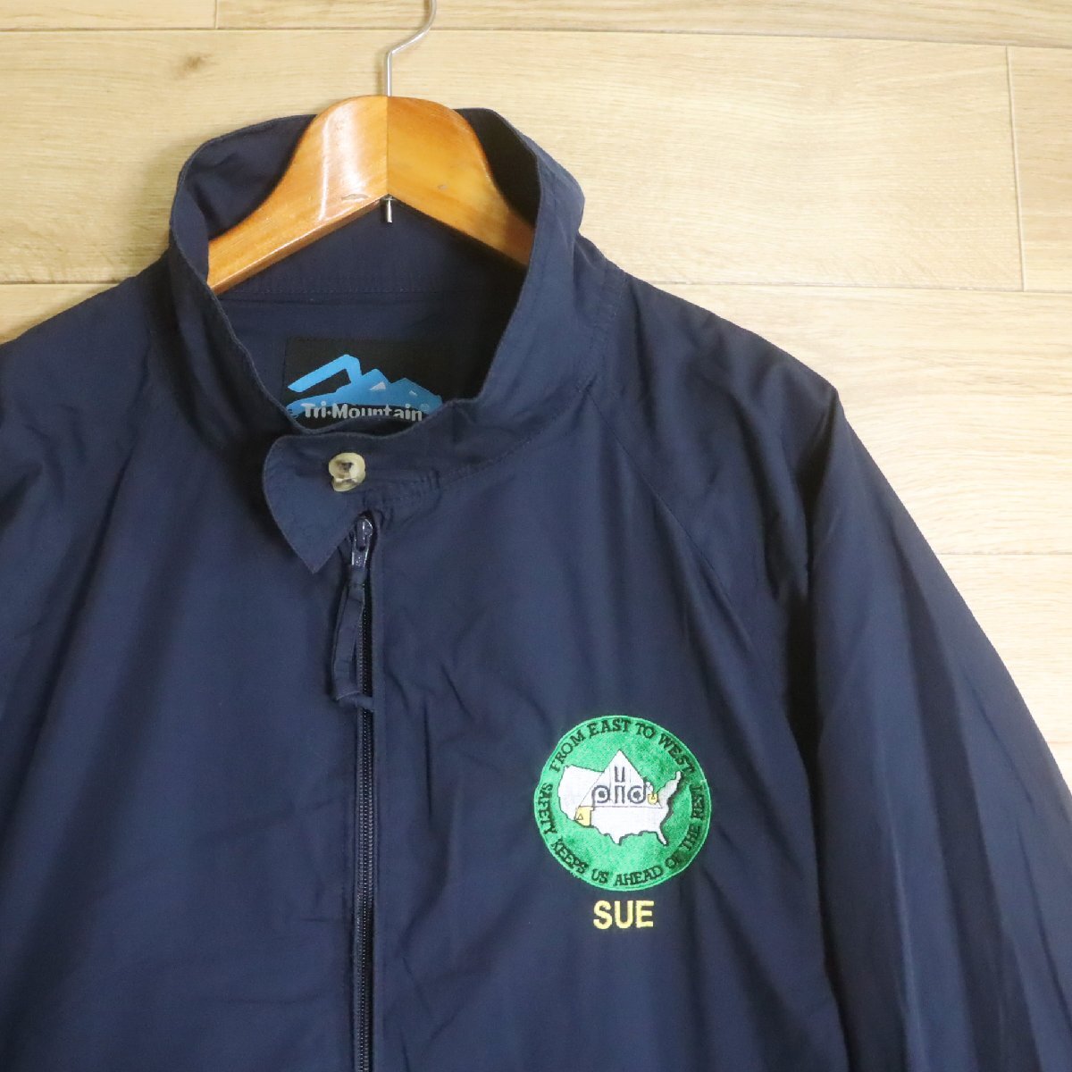 I1R/R7.15-6 アメリカ古着 Tri-Mountain トライマウンテン スイングトップ ハリントンジャケット 刺繍 XL メンズ ネイビー