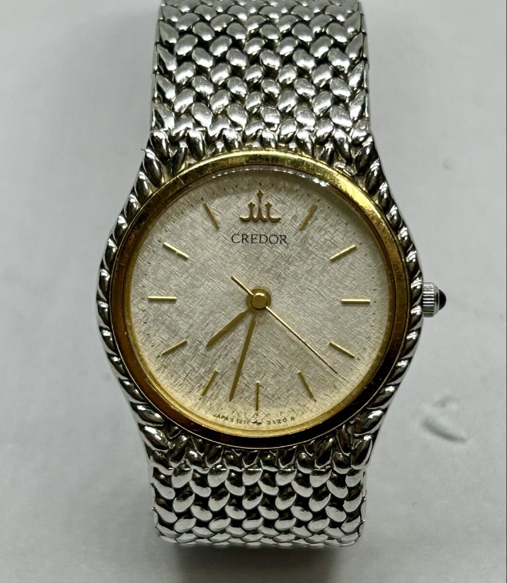 使用感少しございます。風防にヒビのようなキズのような物がございます(写真10枚目)。電池交換済み、動作確認済みです。状態は写真にてご確認お願いします。完璧を求める方はお控えください。